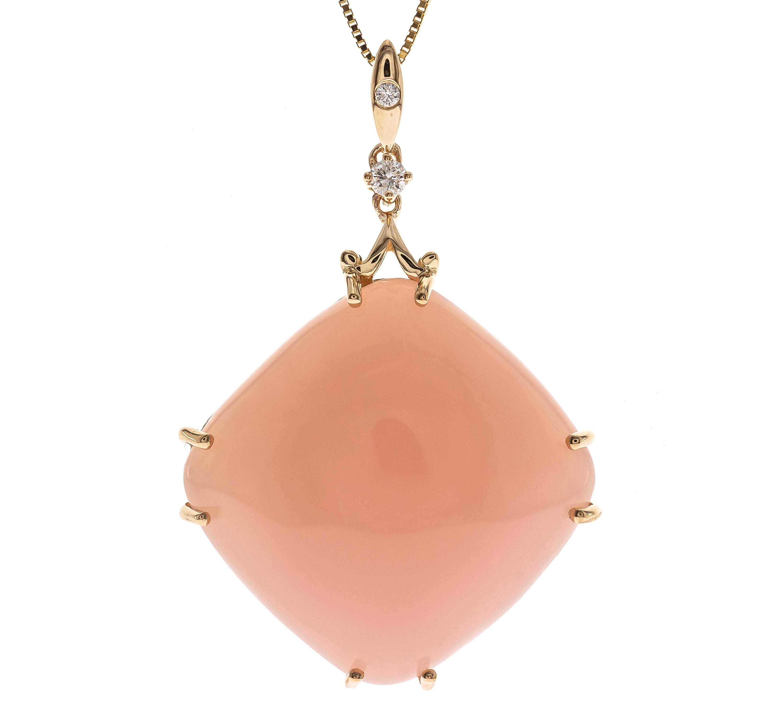 Exquisite 20 Carat Cushion-Cab Pink Opal Pendant with Diamond Accents
