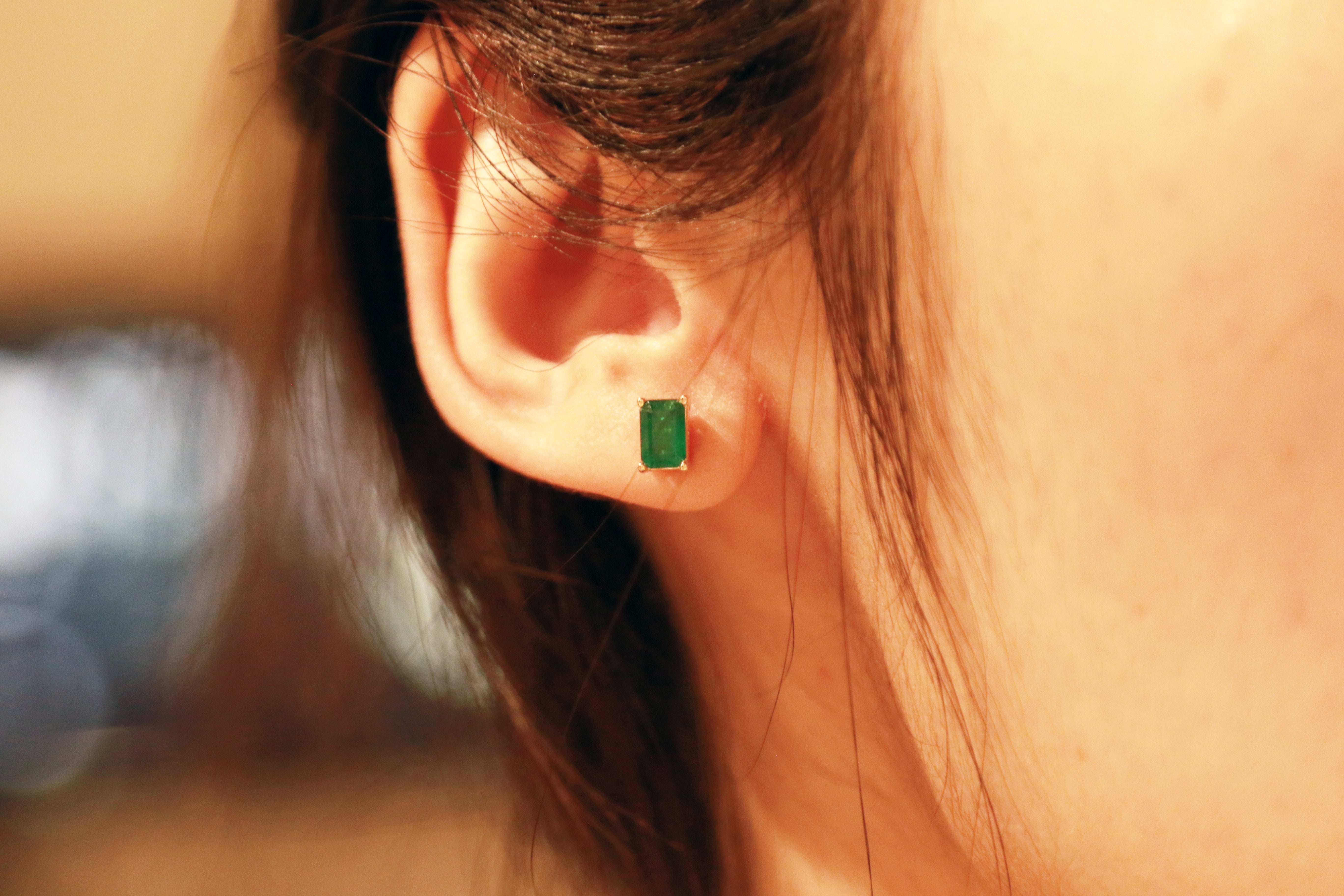 Katalina 10K Yellow Gold Emerald-Cut Natural Zambian Emerald Earring