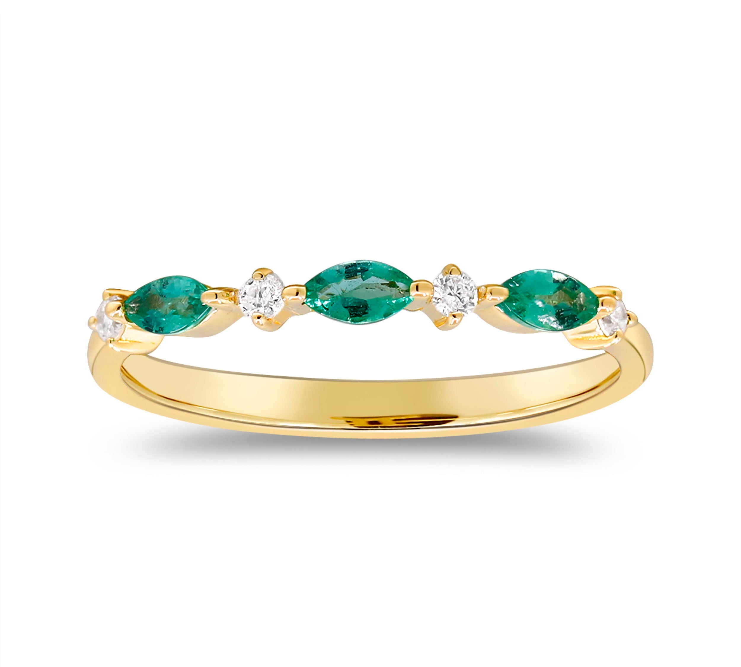 Enchanting Elegance: Remi 14K Yellow Gold Marquise Cut Natural Zambian Emerald Ring