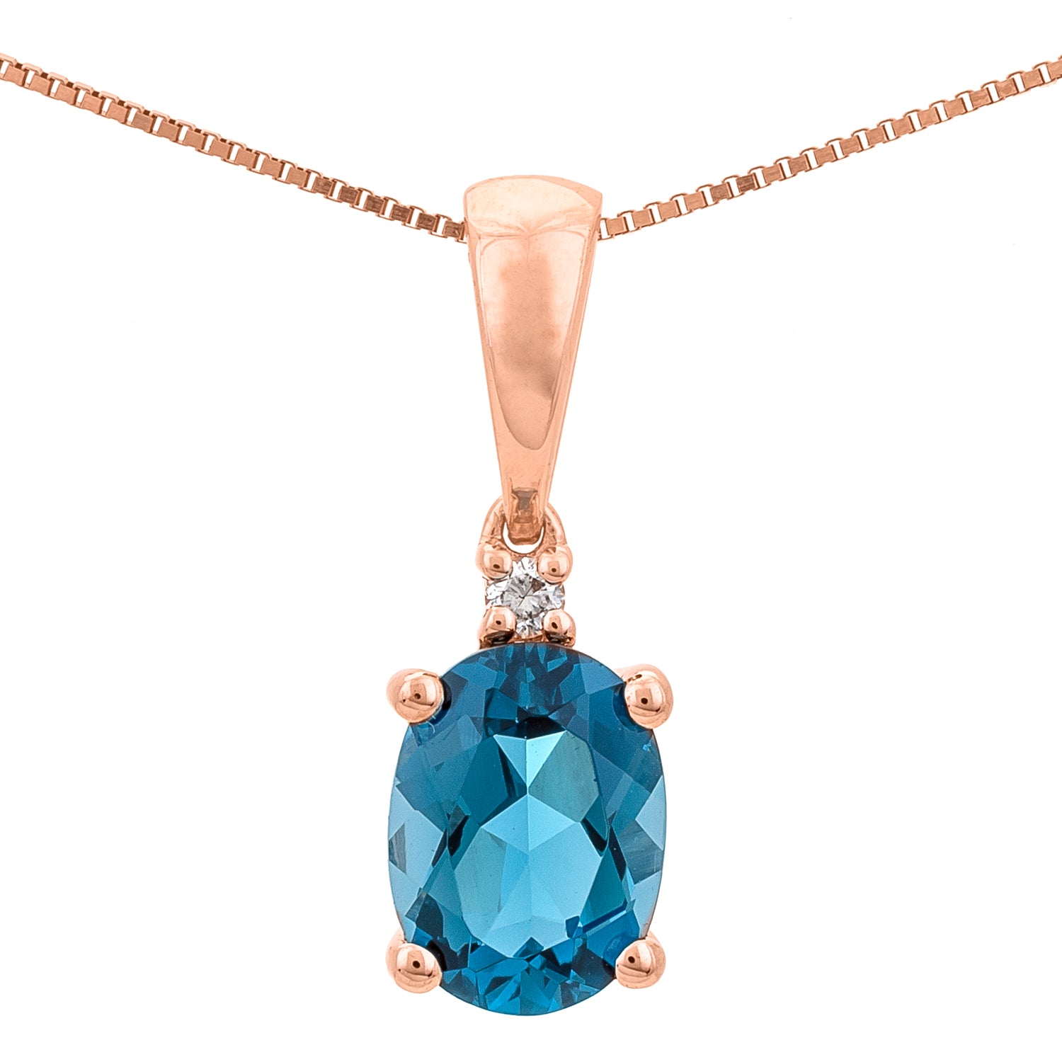 Decorate yourself in elegance with this Pendant is crafted from 10-karat Yellow Gold by Gin & Grace. This Pendant is made up of Oval-cut Brazilian London Blue Topaz (1 Pcs) 1.60 carat and Round-cut White Diamond (1 Pcs) 0.02 carat. This Pendant is weight 0.68 grams. This delicate Pendant is polished to a high finish shine.