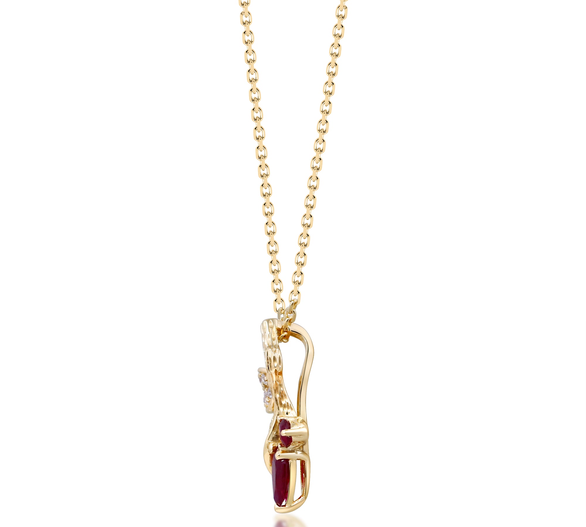 Butterfly Heart 14K Yellow Gold Mozambique Ruby Pendant