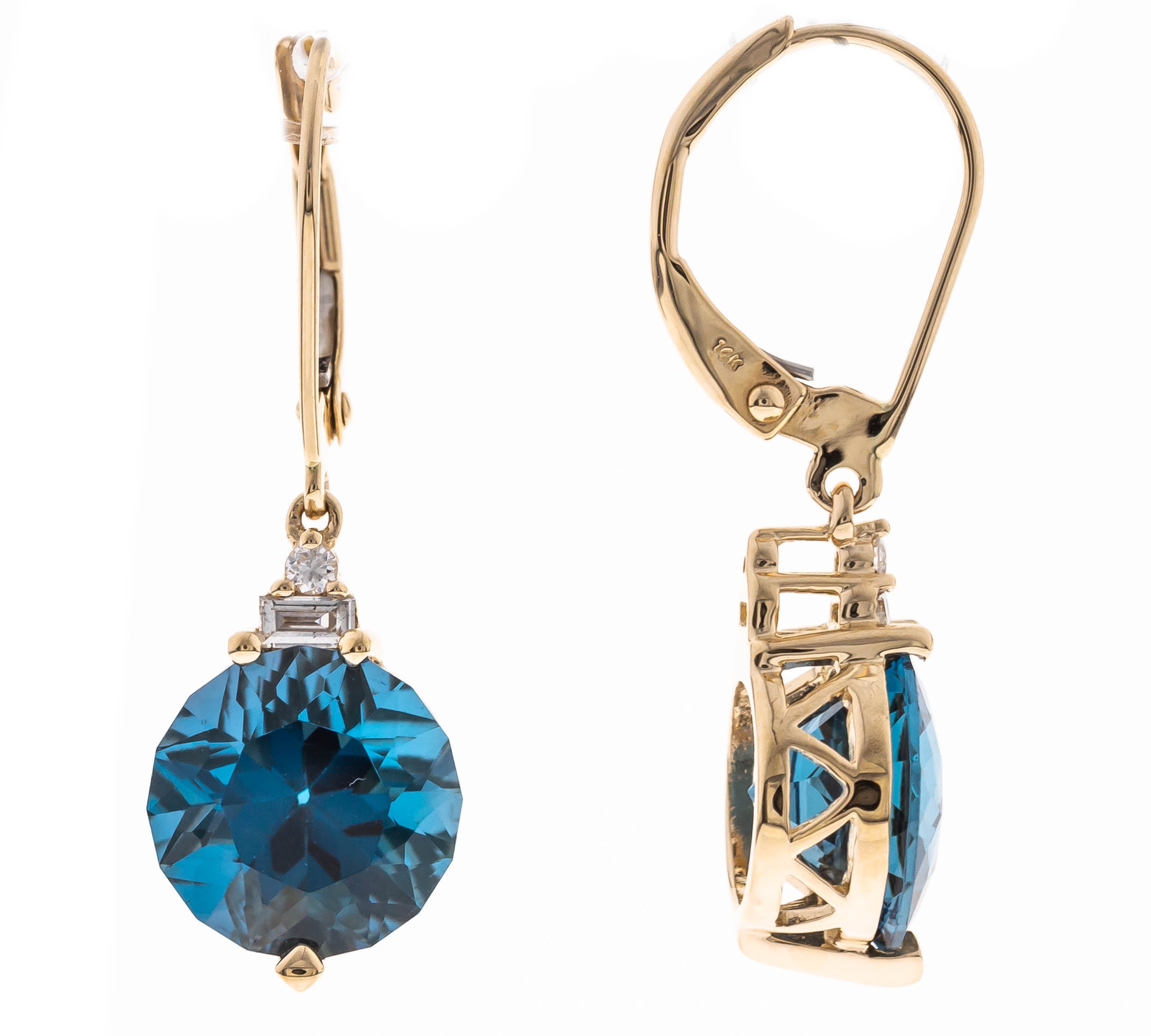 Genesis 14K Yellow Gold Round-Cut Brazilian London Blue Topaz Earring