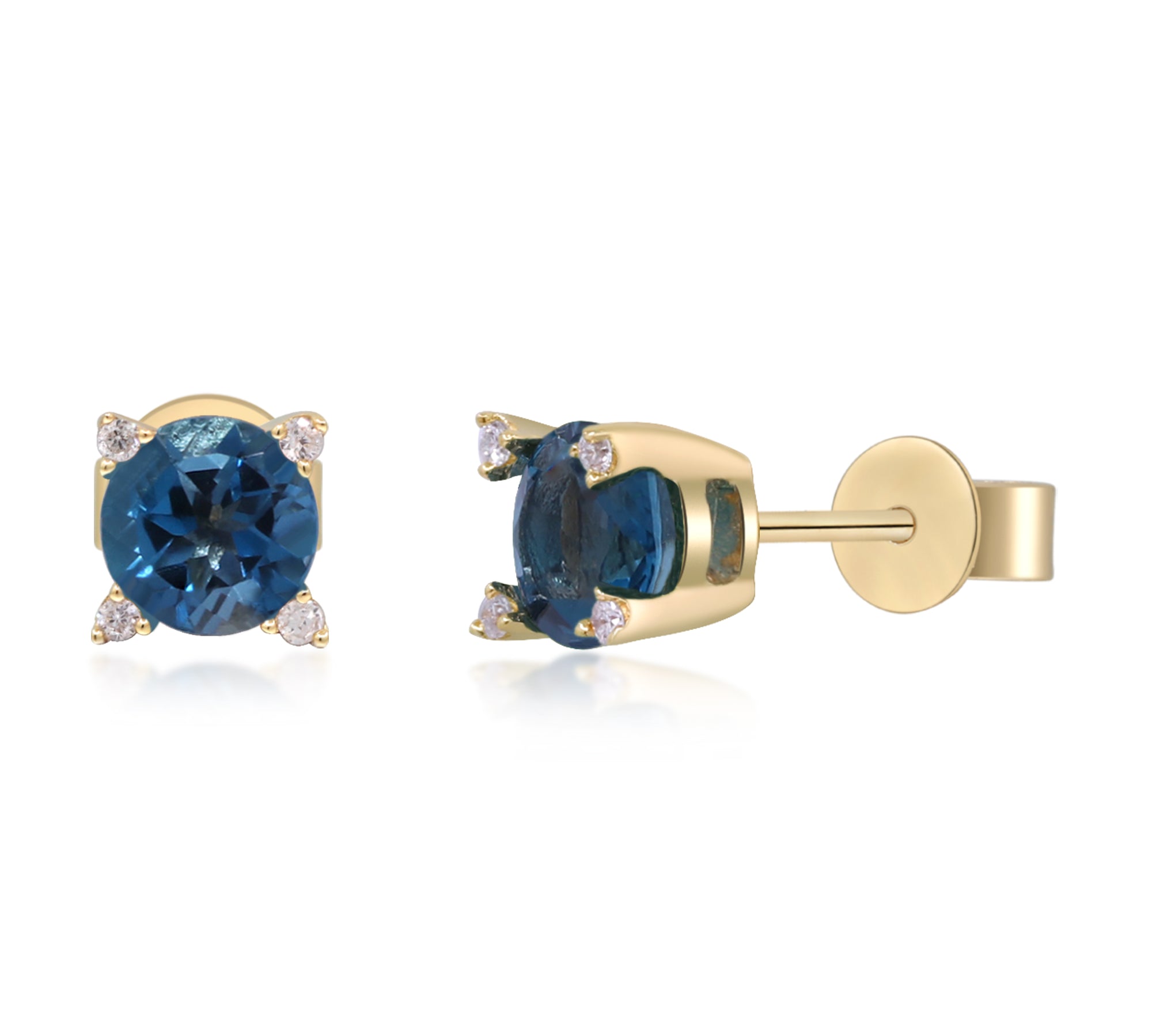 Alaina 10K Yellow Gold Round-Cut Brazilian London Blue Topaz Earrings