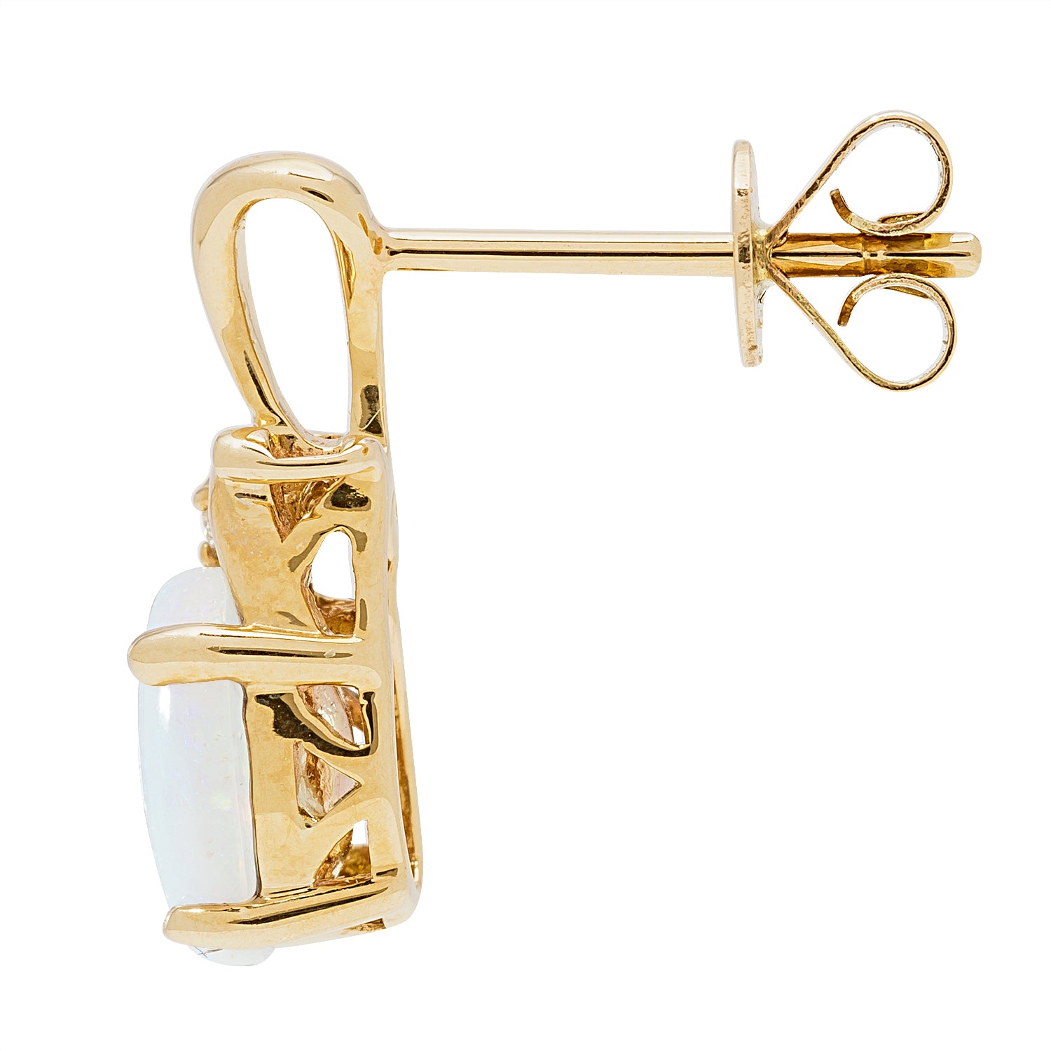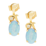 Decorate yourself in elegance with this Earring is crafted from 14-karat Yellow Gold by Gin & Grace. This Earring is made up of African Opal Oval shaped (2 pcs) 1.07 carat, Round-cut White Diamond (2 Pcs) 0.03 Carat. This Earring is weight 1.80 grams. This delicate Earring is polished to a high finish shine.