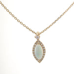 Decorate yourself in elegance with this Pendant is crafted from 10-karat Yellow Gold by Gin & Grace Pendant. This Pendant is made up of 4X8 Marquise-cut Prong setting Natural African Opal (1 Pcs) 0.40 Carat and Round-Cut Prong setting Natural White Diamond (21 Pcs) 0.10 Carat. This Pendant is weight 1.57 grams. The gorgeous Pendant hangs from a 18-inch wheat chain. This delicate Pendant is polished to a high finish shine.