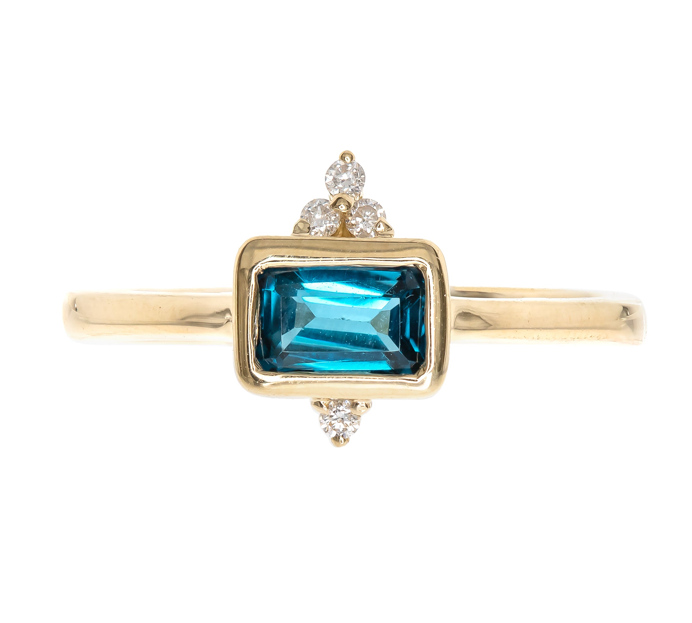 Kaylin 14K Yellow Gold Emerald-Cut Brazilian London Blue Topaz Ring