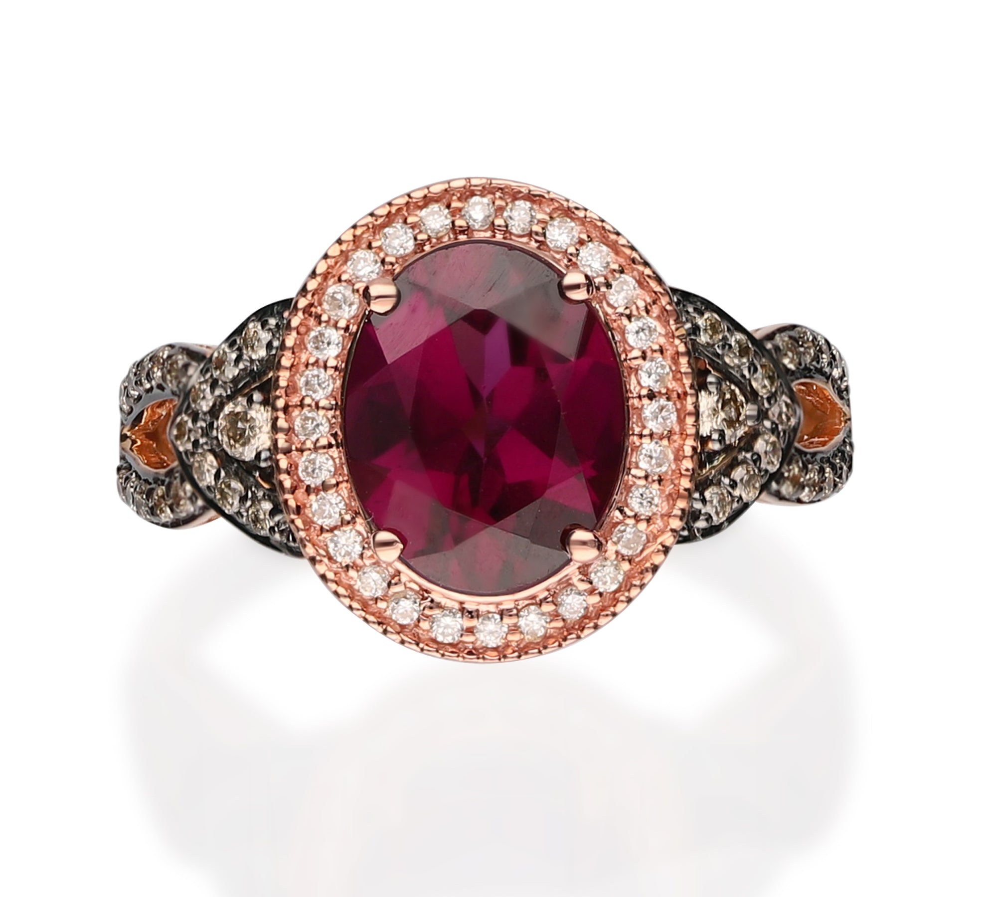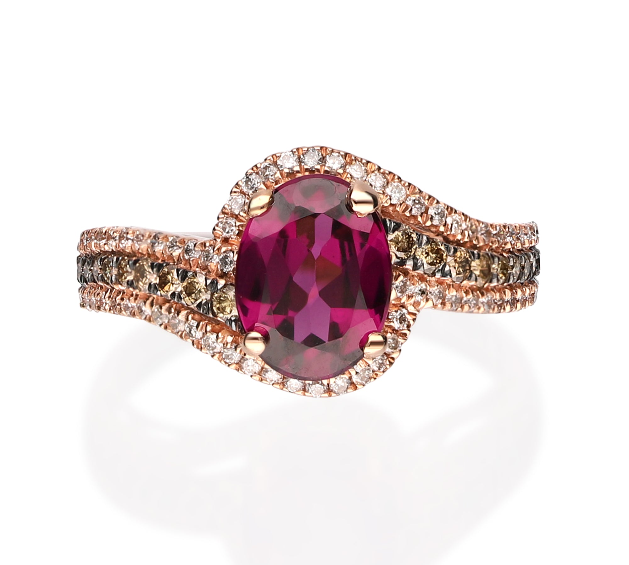 Laney 10K Rose Gold Oval-Cut Madagascar Rhodolite Ring