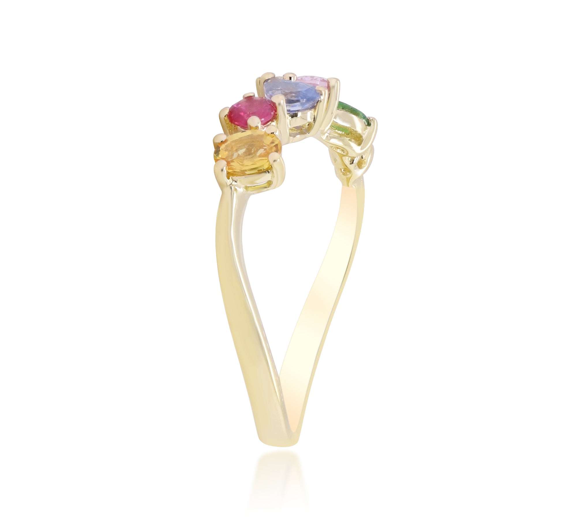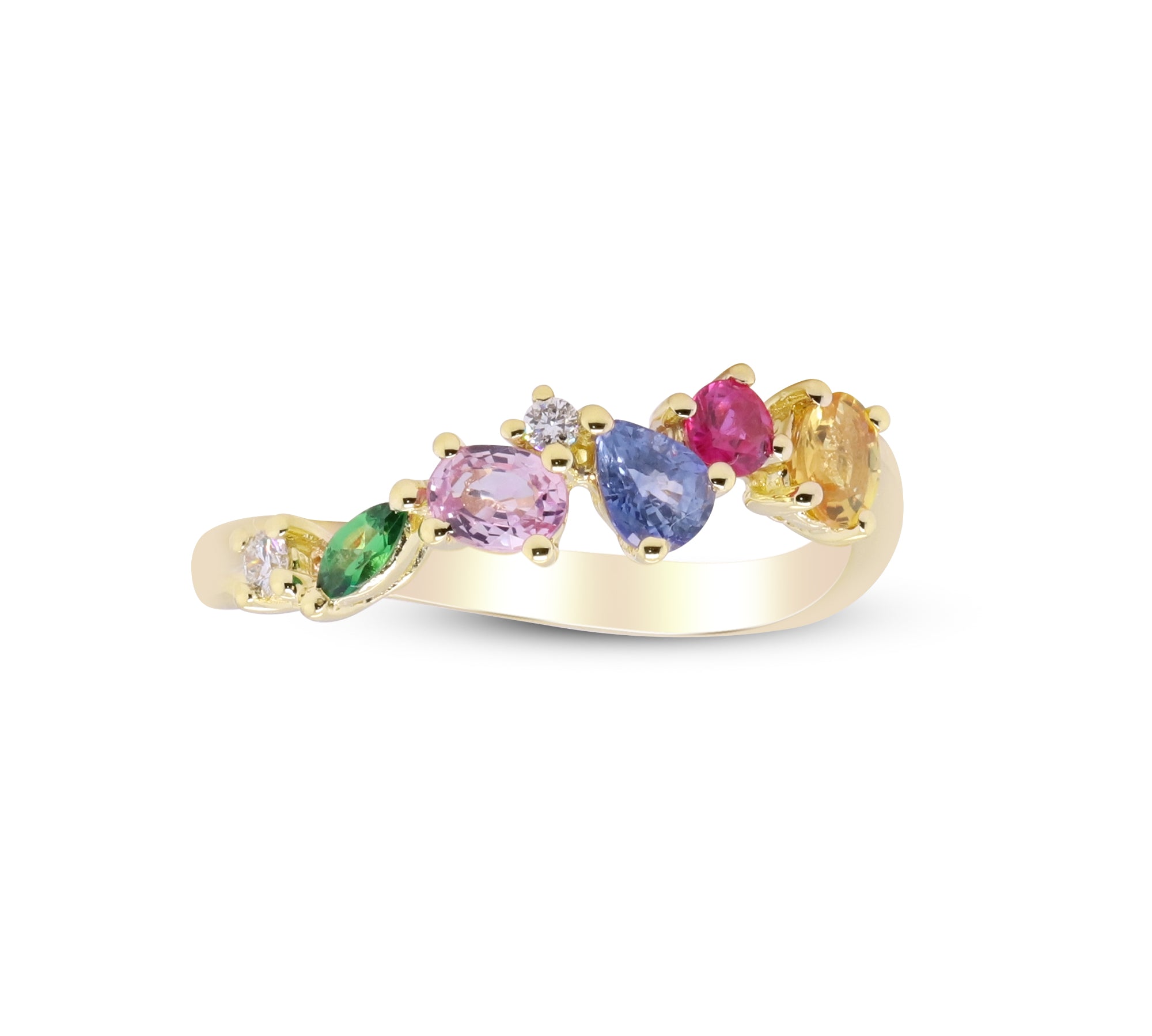 Kyra 14K Yellow Gold Round-Cut Multi Sapphire Ring