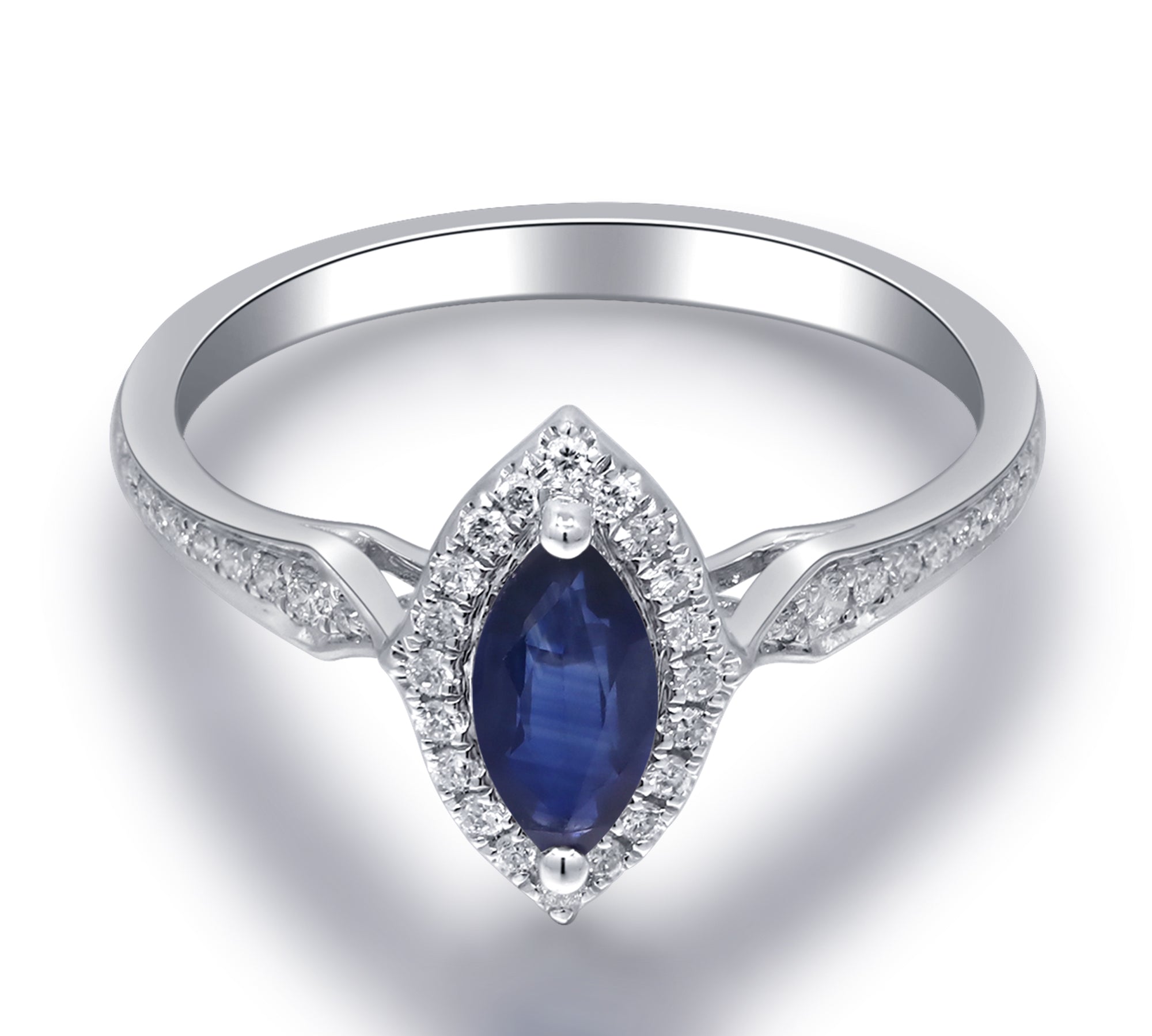 Umi 10K White Gold Marquise-Cut Ceylon Blue Sapphire Ring