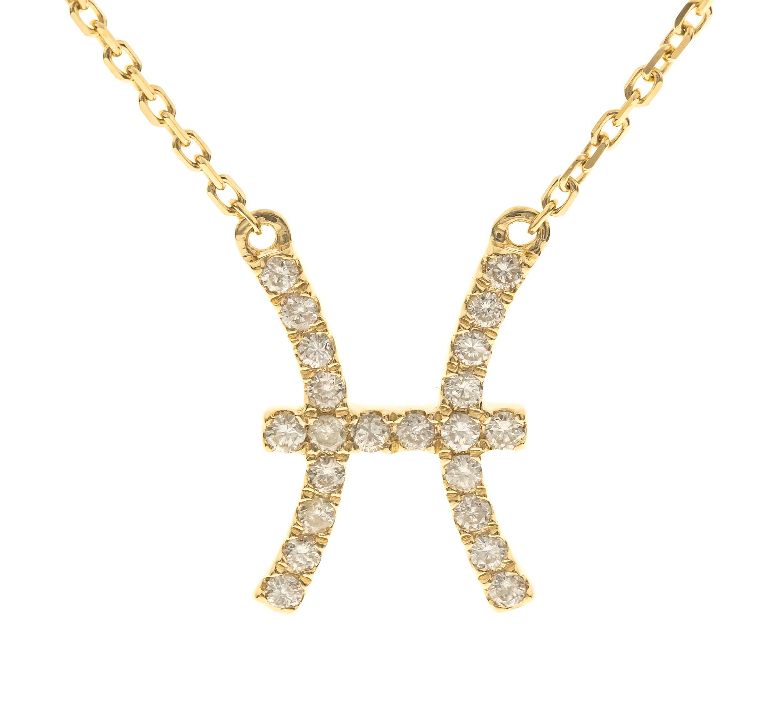 Pisces 14K Yellow Gold Round-Cut White Diamond Pendant