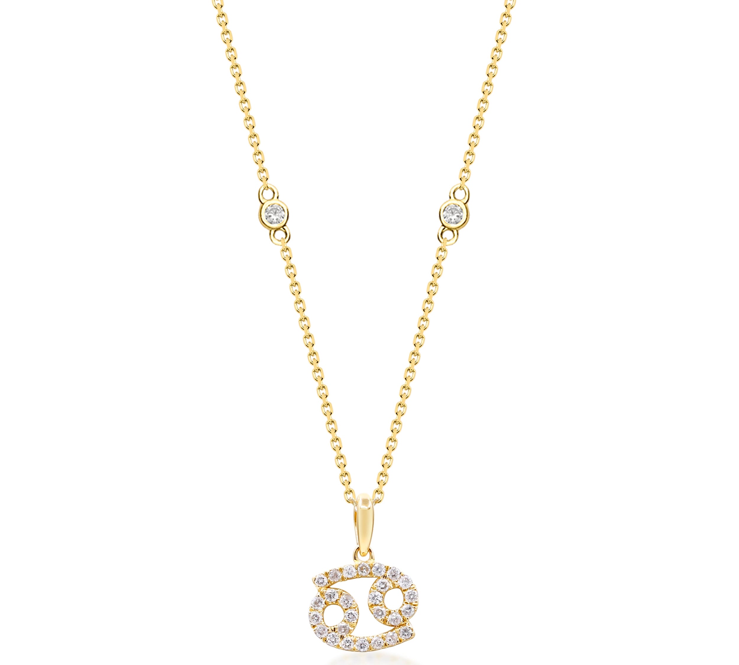 Cancer 14K Yellow Gold Round-Cut White Diamond Pendant