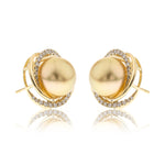 These exquisite 14K Yellow Gold earrings feature lustrous Natural South Sea pearls, totaling an impressive 25.83 carats, radiating timeless elegance and sophistication. The pearls are beautifully complemented by natural white diamond accents weighing 0.40 carats, adding a touch of sparkle and refinement. Perfect for special occasions or elevating everyday wear, these earrings offer a luxurious blend of classic and contemporary style. With their brilliant shine and high-quality craftsmanship, these earrings make a stunning statement of luxury and grace.