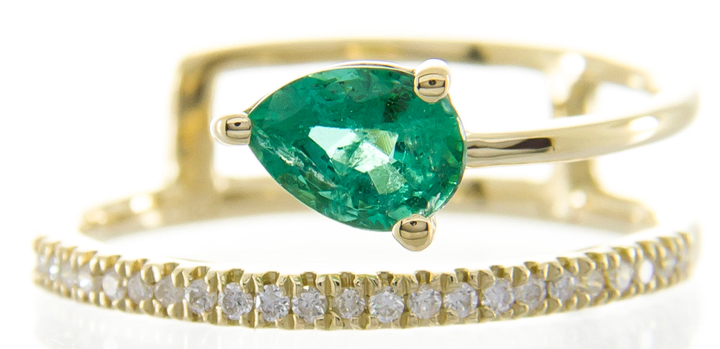 Serena 18K Yellow Gold Pear-Cut Natural Zambian Emerald Ring