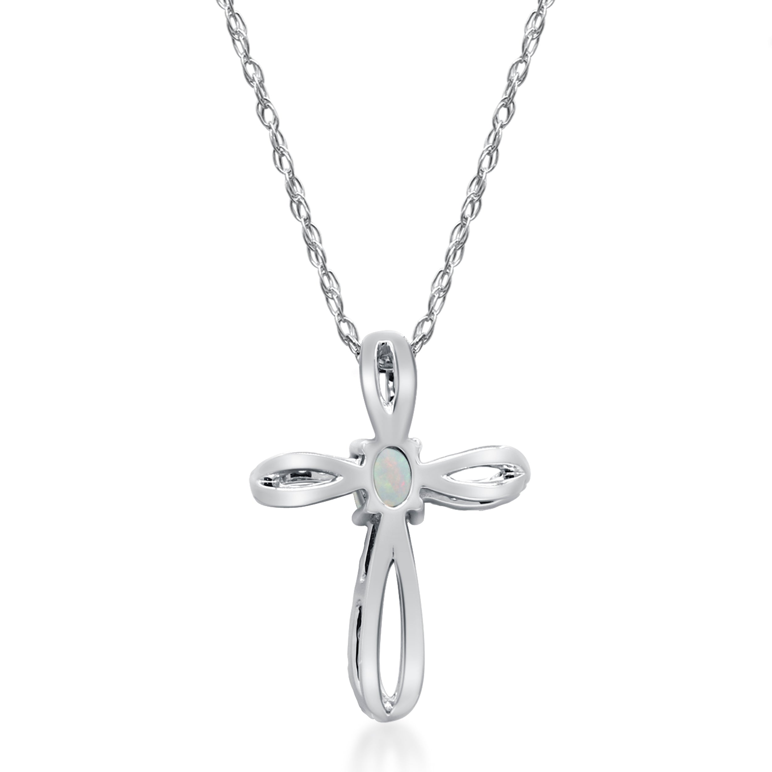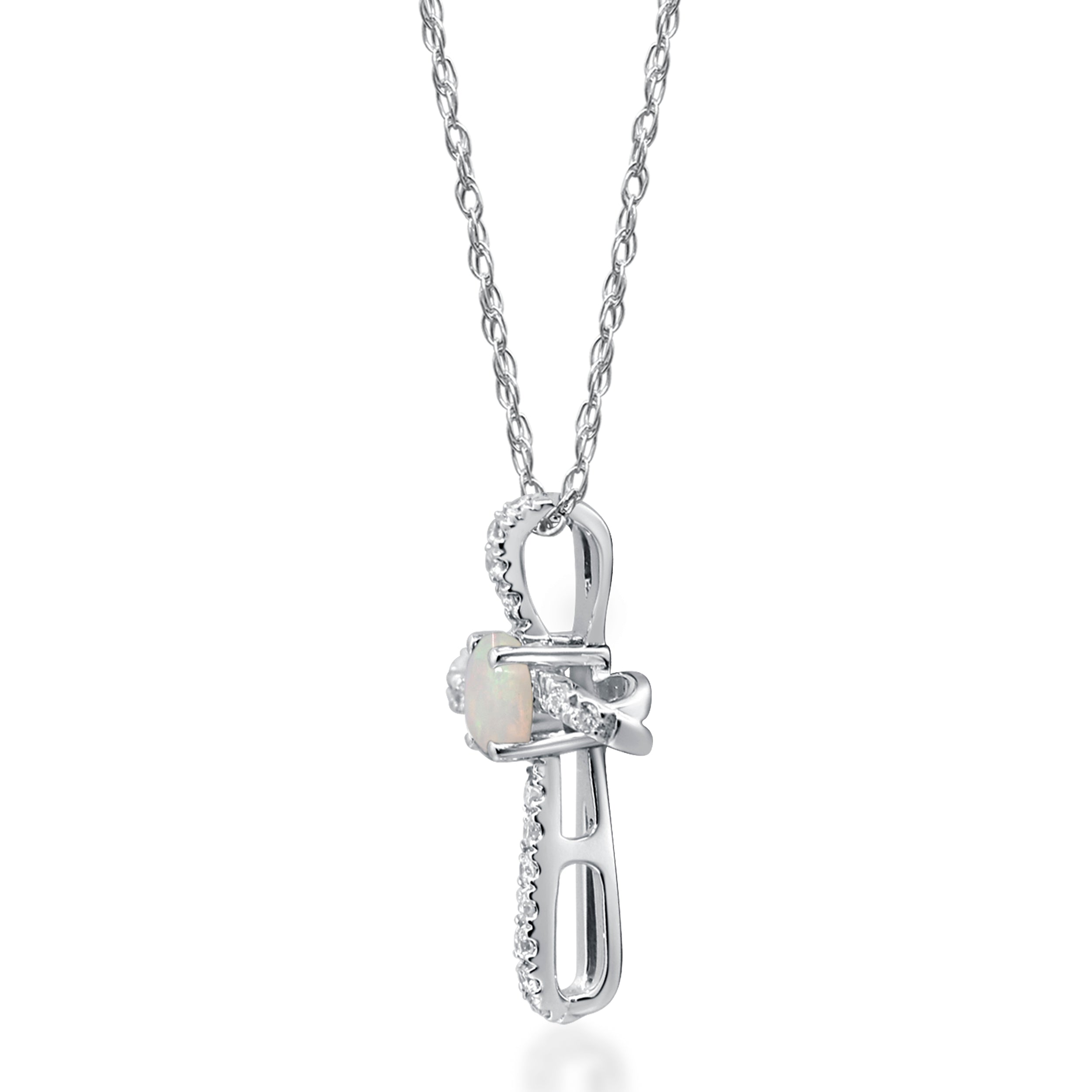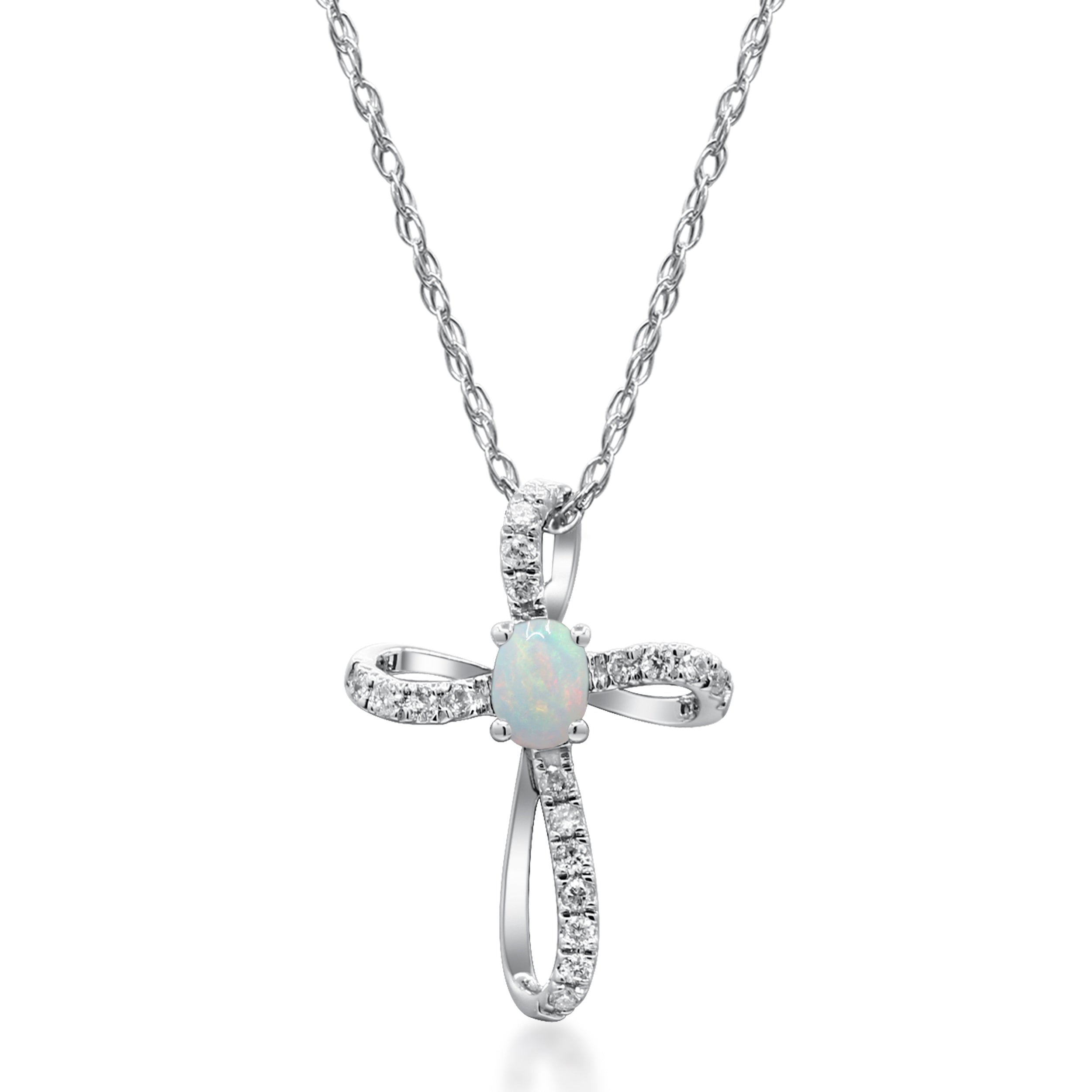 Decorate yourself in elegance with this Pendant is crafted from 10K White Gold by Gin & Grace Pendant. The jewelry boasts Oval-Cut cabochon setting white color Natural Opal (1 pcs) 0.12 Carat and Round-Cut prong setting Diamond (19 pcs) 0.09 Carat. This Pendant is weight 0.70 grams. This delicate Pendant is polished to a high finish shine. Simple Stud clasps keep these Pendant securely fastened.