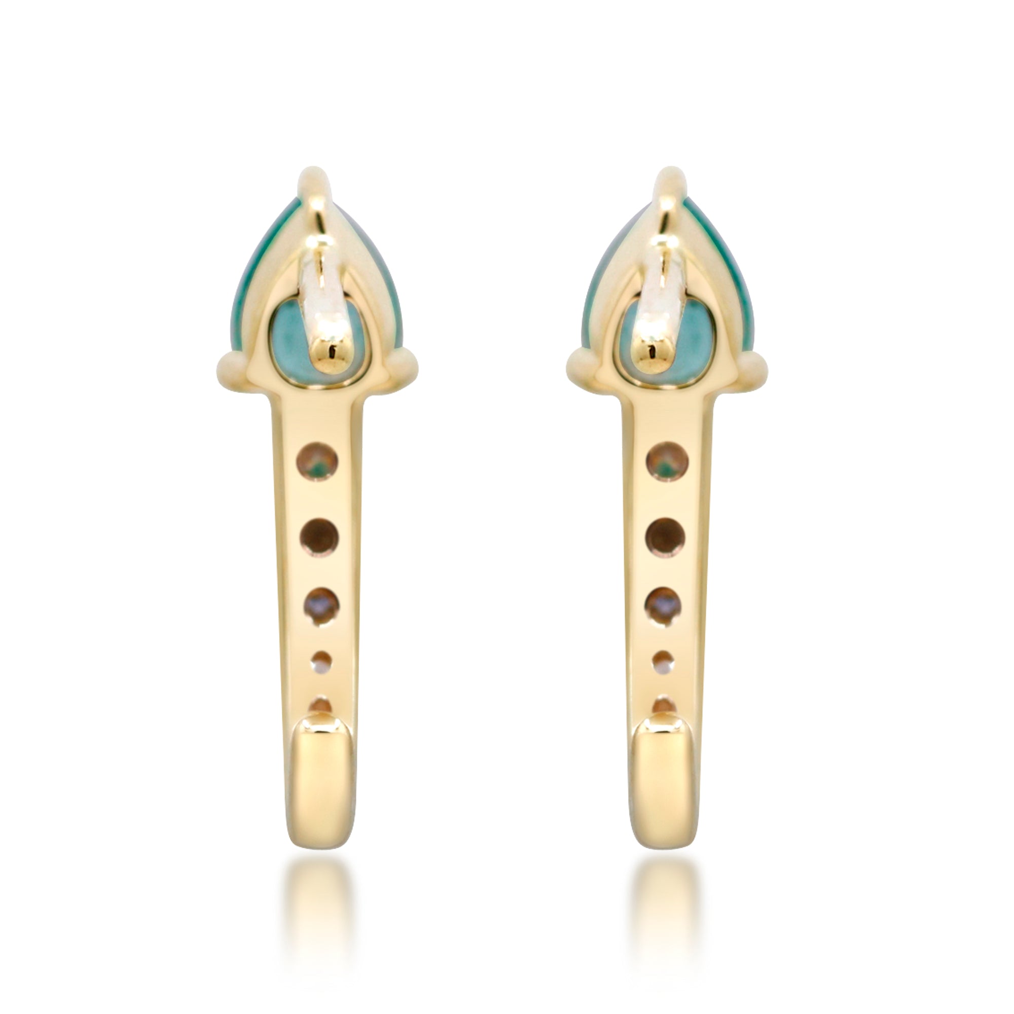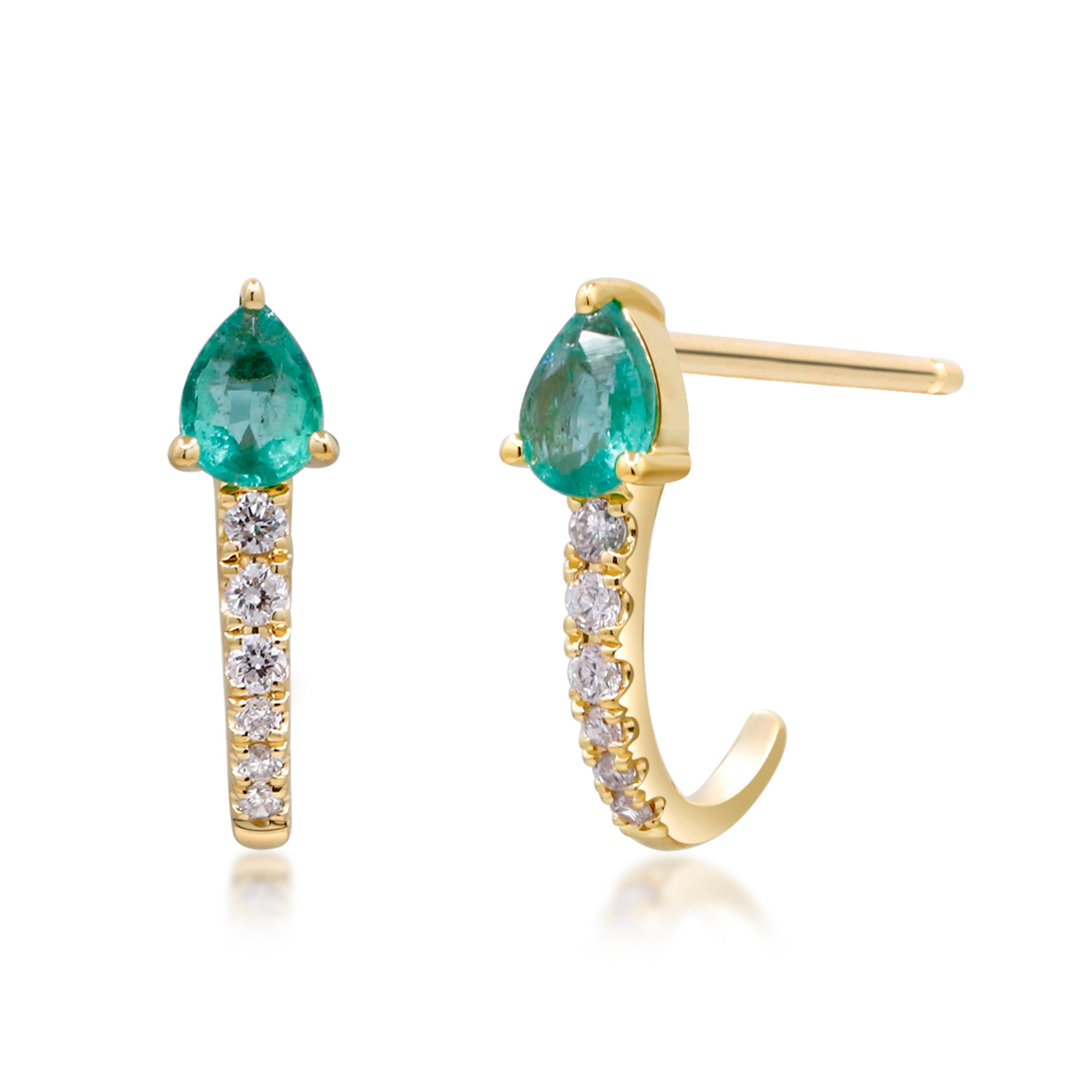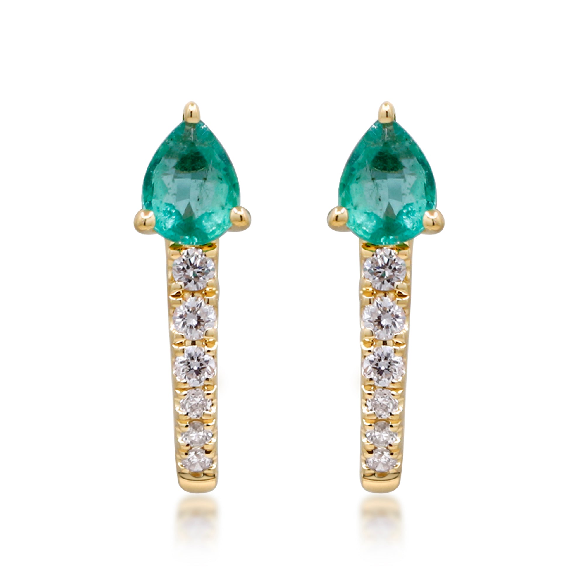 Decorate yourself in elegance with this Earring is crafted from 10K Yellow Gold by Gin & Grace. This Earring is made up of Emerald Pear-Cut (2 pcs) 0.30 carat, Round-cut White Diamond (12 Pcs) 0.08 Carat. This Earring is weight 0.80 grams. This delicate Earring is polished to a high finish shine.