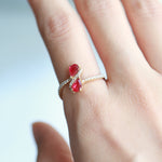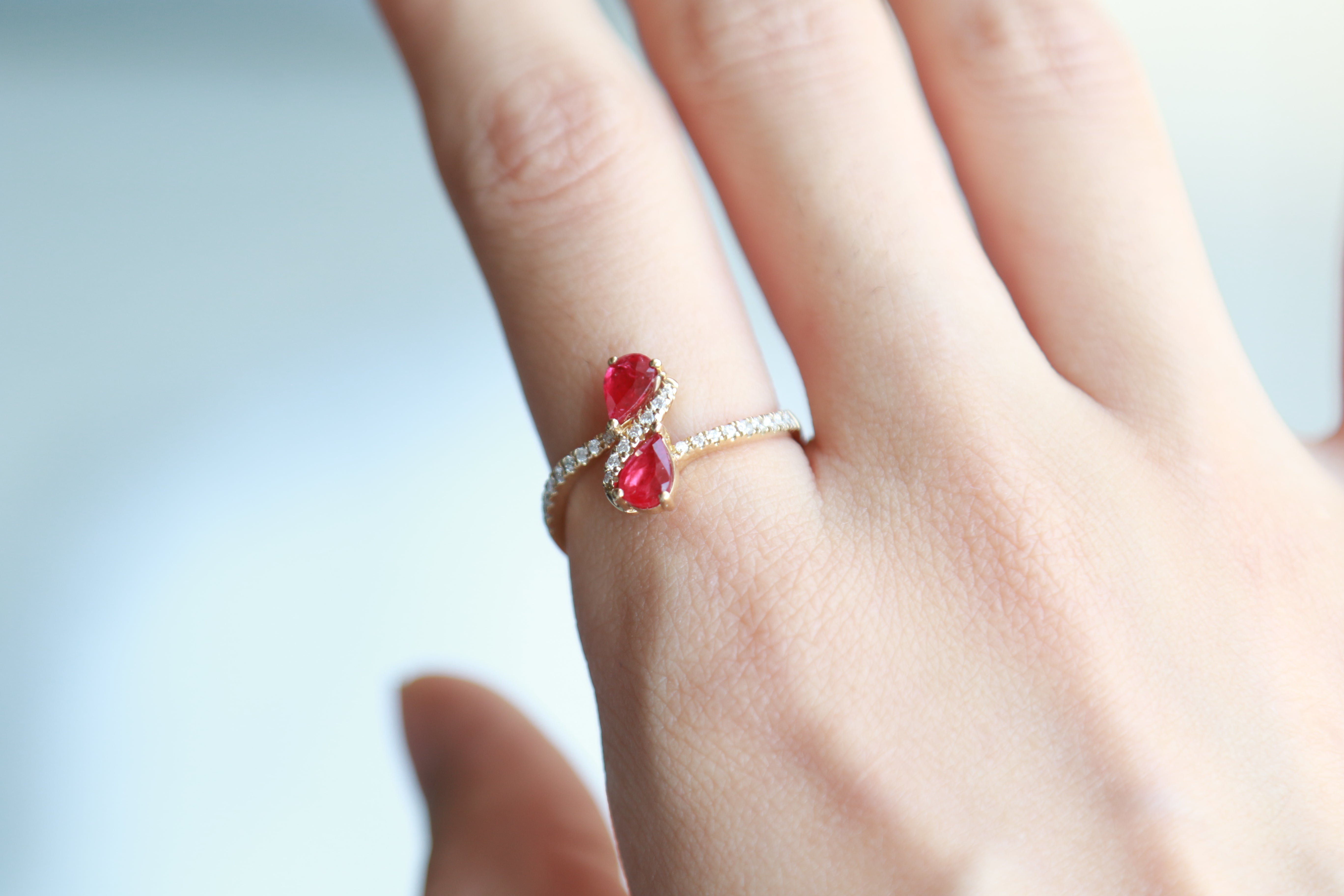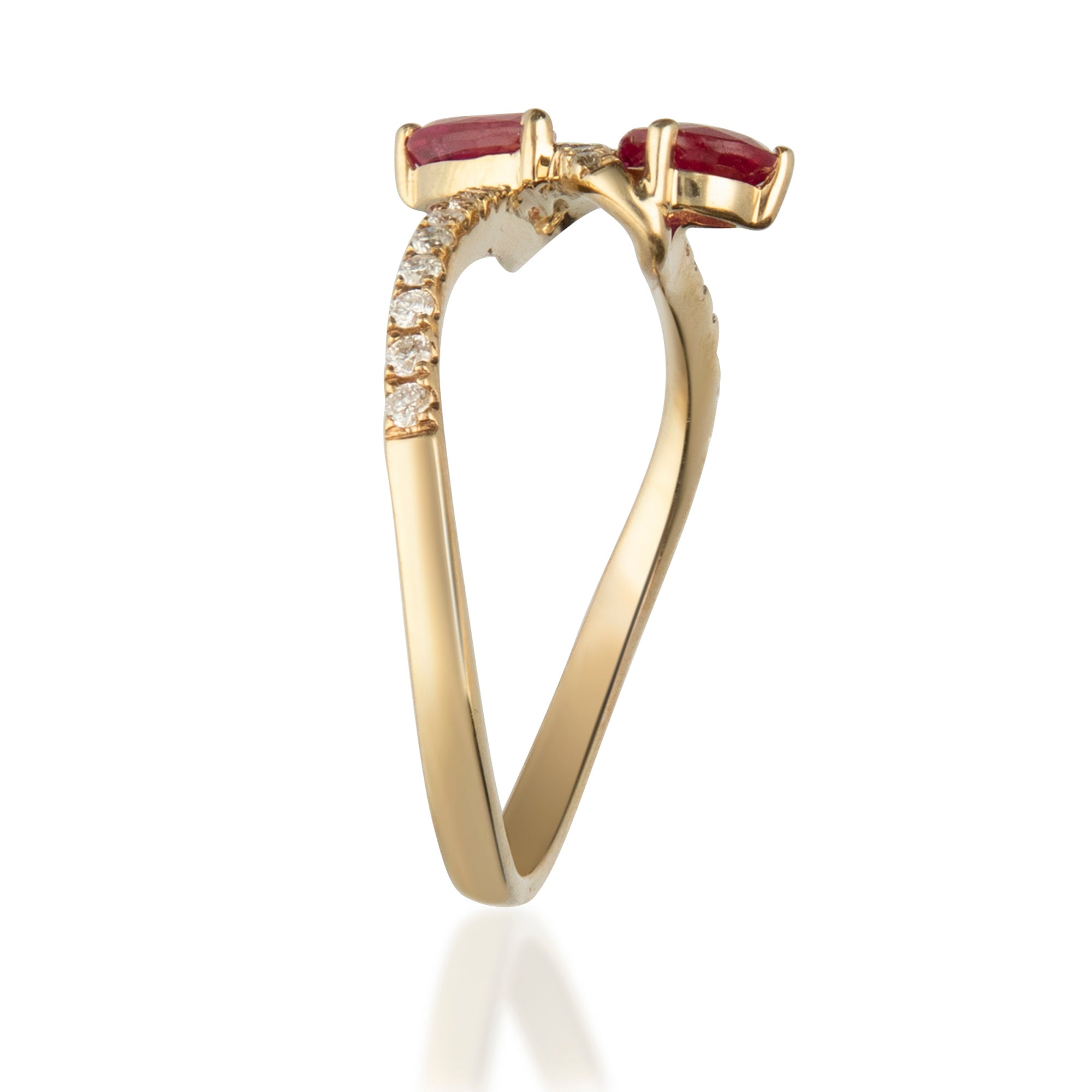 Stunning, timeless and classy eternity Unique ring. Decorate yourself in luxury with this Gin & Grace ring. This ring is made up of Pear-Cut Prong Setting Mozambique Ruby (2pcs) 0.88 Carat and Round-Cut Prong Setting Diamond (25pcs) 0.17 Carat accent stones for a lovely design weighing 1.79 grams. Crafted with 10k Yellow Gold, this delicate Ring is polished to a high finish shine