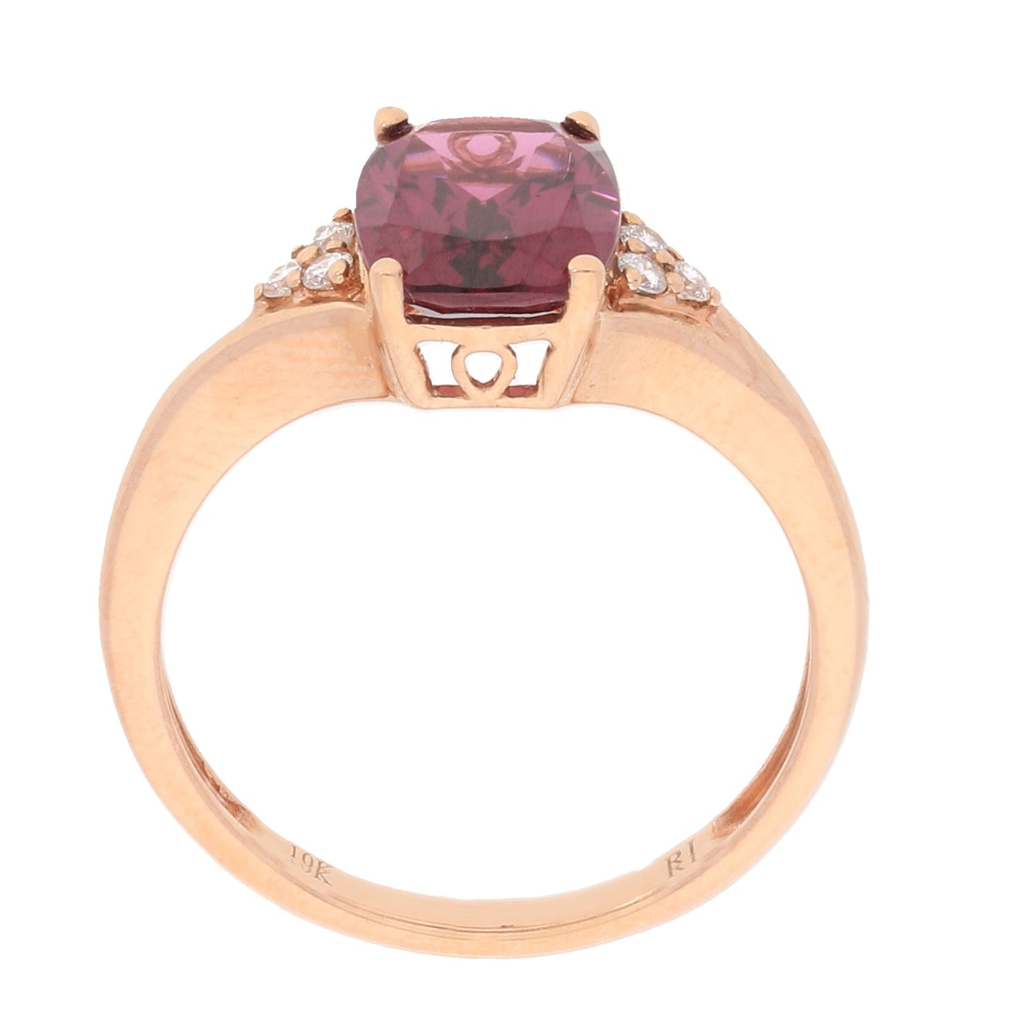 Stunning, timeless and classy eternity Unique Ring. Decorate yourself in luxury with this Gin & Grace Ring. The 10K Rose Gold jewelry boasts Cushion-Cut Prong Setting Raspberry color Natural Madagascar Rhodolite Garnet (1 pcs) 2.50 Carat, along with Natural Round cut white Diamond (6 Pcs) 0.08 Carat , accent stones for a lovely design. This Ring is weight 1.93 grams. Crafted with 10K Rose Gold, this delicate Ring is polished to a high finish shine.7
