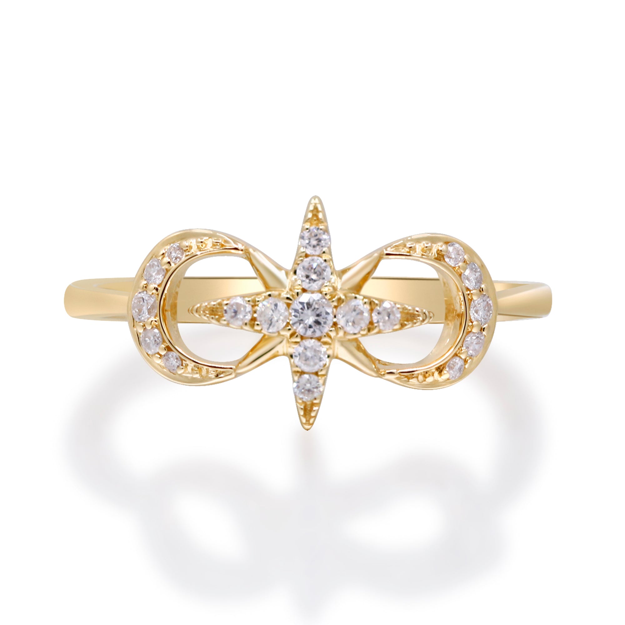 Decorate yourself in elegance with this Ring is crafted from 14-karat Yellow Gold by Gin & Grace. This Ring is made up of Round-cut Diamond (19 pcs) 0.17 Carat. This Ring is weight 1.77 grams. This delicate Ring is polished to a high finish shine.