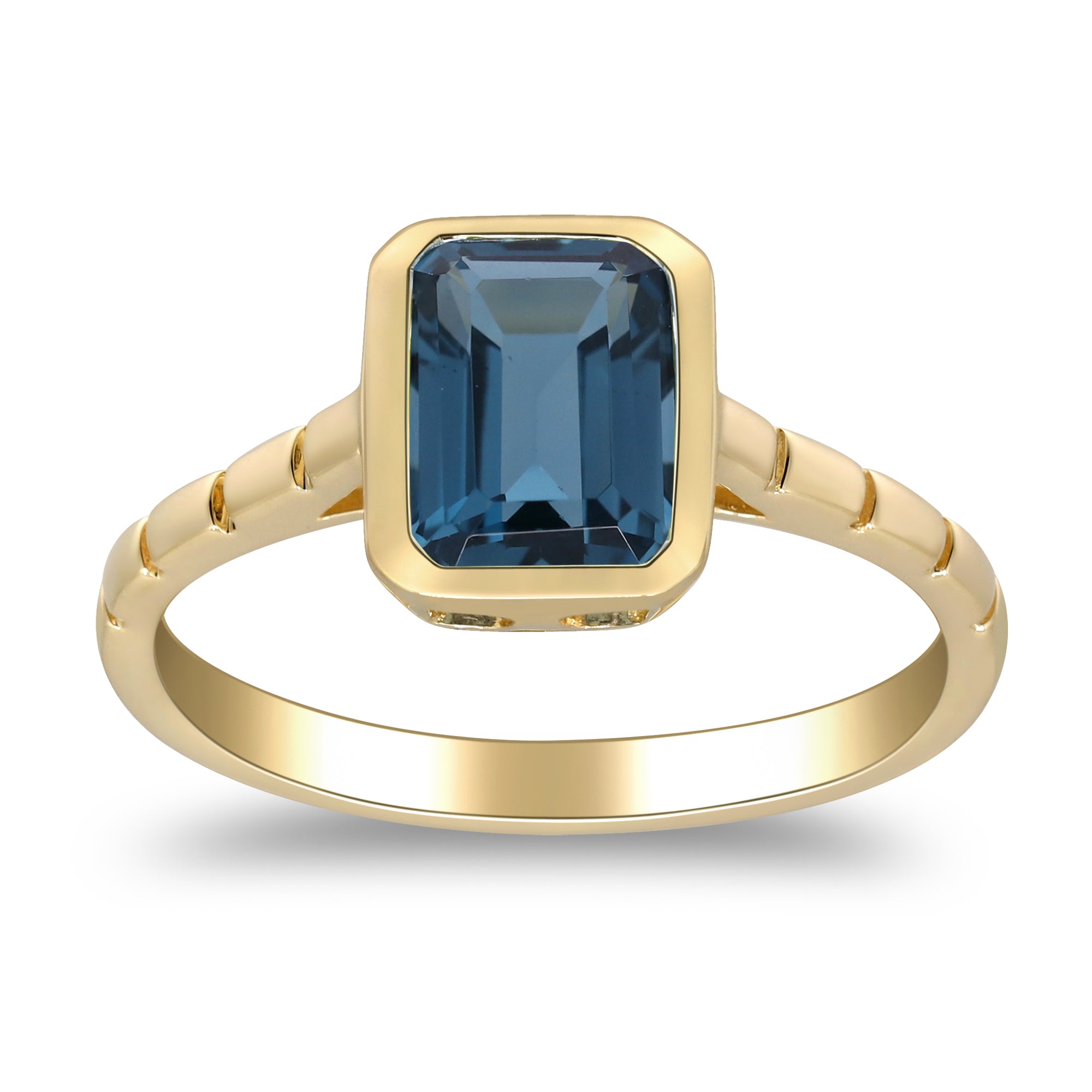 Stunning, timeless, and classy eternity Unique ring. Decorate yourself in luxury with this Gin & Grace ring. The 10K Yellow Gold jewelry boasts an Emerald-Cut Prong Setting Genuine Brazilian London Blue Topaz (1 pcs) 1.97 Carat accent stones for a lovely design. This ring weighs 1.97 grams. Crafted with 10K Yellow Gold, this delicate Ring is polished to a high finish shine.