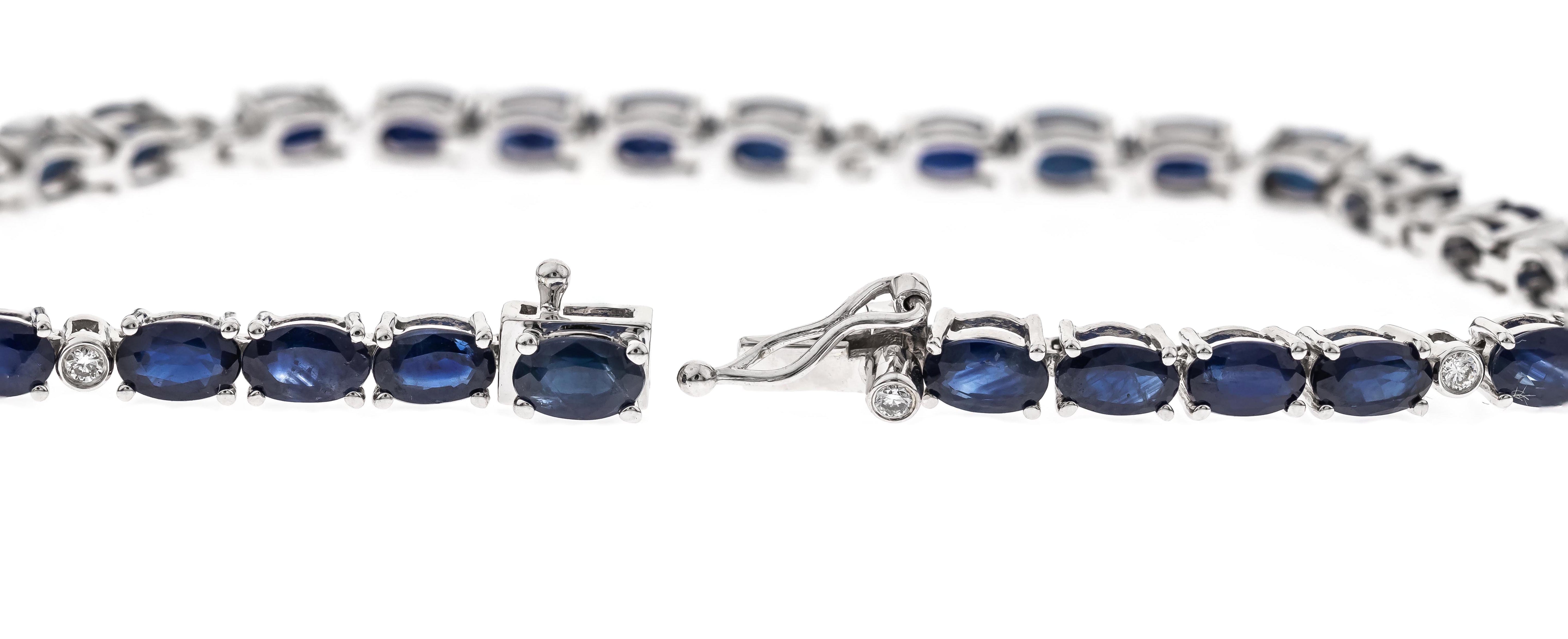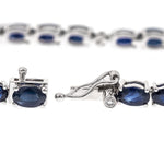 Stunning, timeless and classy eternity Unique Bracelet. Decorate yourself in luxury with this Gin & Grace Bracelet. The 10K White Gold jewelry boasts Oval-Cut Prong Setting Natural Blue Sapphire (33 pc) 9.29 Carat, along with Natural Round cut white Diamond (7 Pcs) 0.07 Carat, accent stones for a lovely design. This Bracelet is weight 6.90 grams. Crafted with 10K White Gold, this delicate Bracelet is polished to a high finish shine.