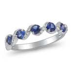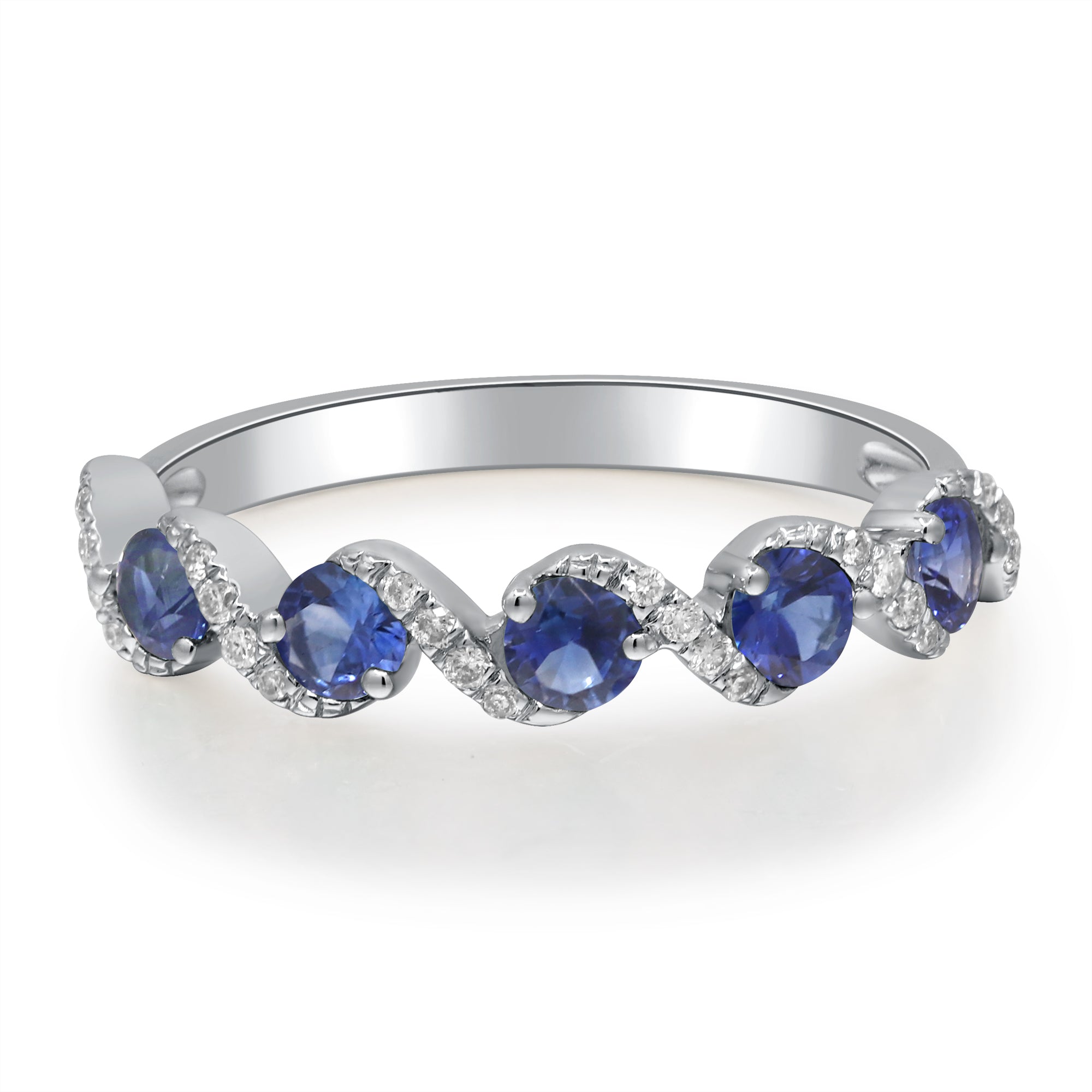 Stunning, timeless and classy eternity Unique Ring. Decorate yourself in luxury with this Gin & Grace Ring. The 10K White Gold jewelry boasts Round-Cut Prong Setting Natural Blue Sapphire (5 pc) 0.60 Carat, along with Natural Round cut white Diamond (24 Pcs) 0.09 Carat, accent stones for a lovely design. This Ring is weight 1.98 grams. Crafted with 10K White Gold, this delicate Ring is polished to a high finish shine.