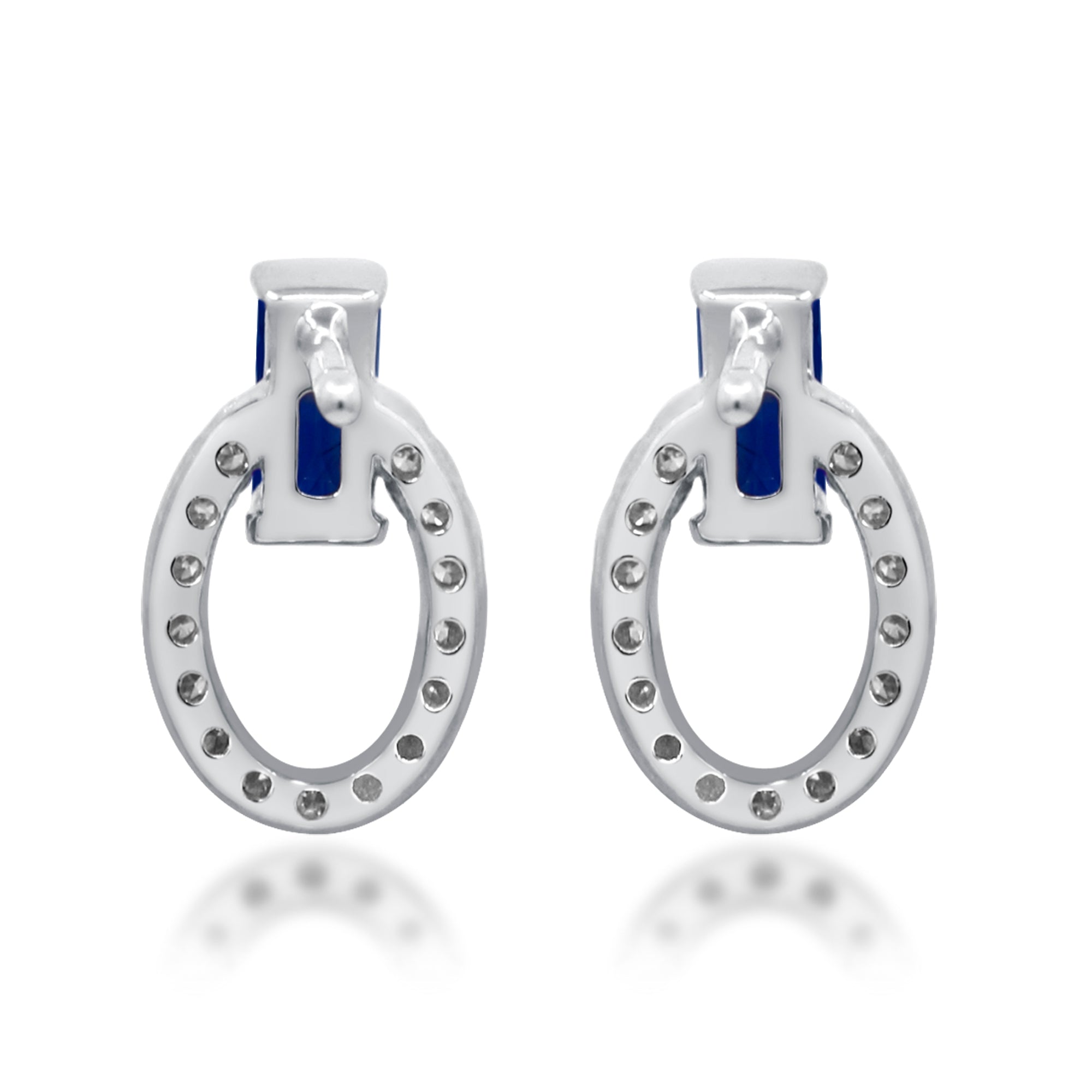 Stunning, timeless and classy eternity Unique Earrings. Decorate yourself in luxury with this Gin & Grace Earrings. This Earrings is made up of Baguette-Cut Prong Setting Genuine Blue Sapphire (2 pc) 0.28 Carat and Round-Cut Prong Setting Natural Diamond (30 pcs) 0.12 Carat accent stones for a lovely design. This Earrings is weight 0.99 grams. The Earrings is crafted of shining 14K White Gold and is completed by a highly polished finish.