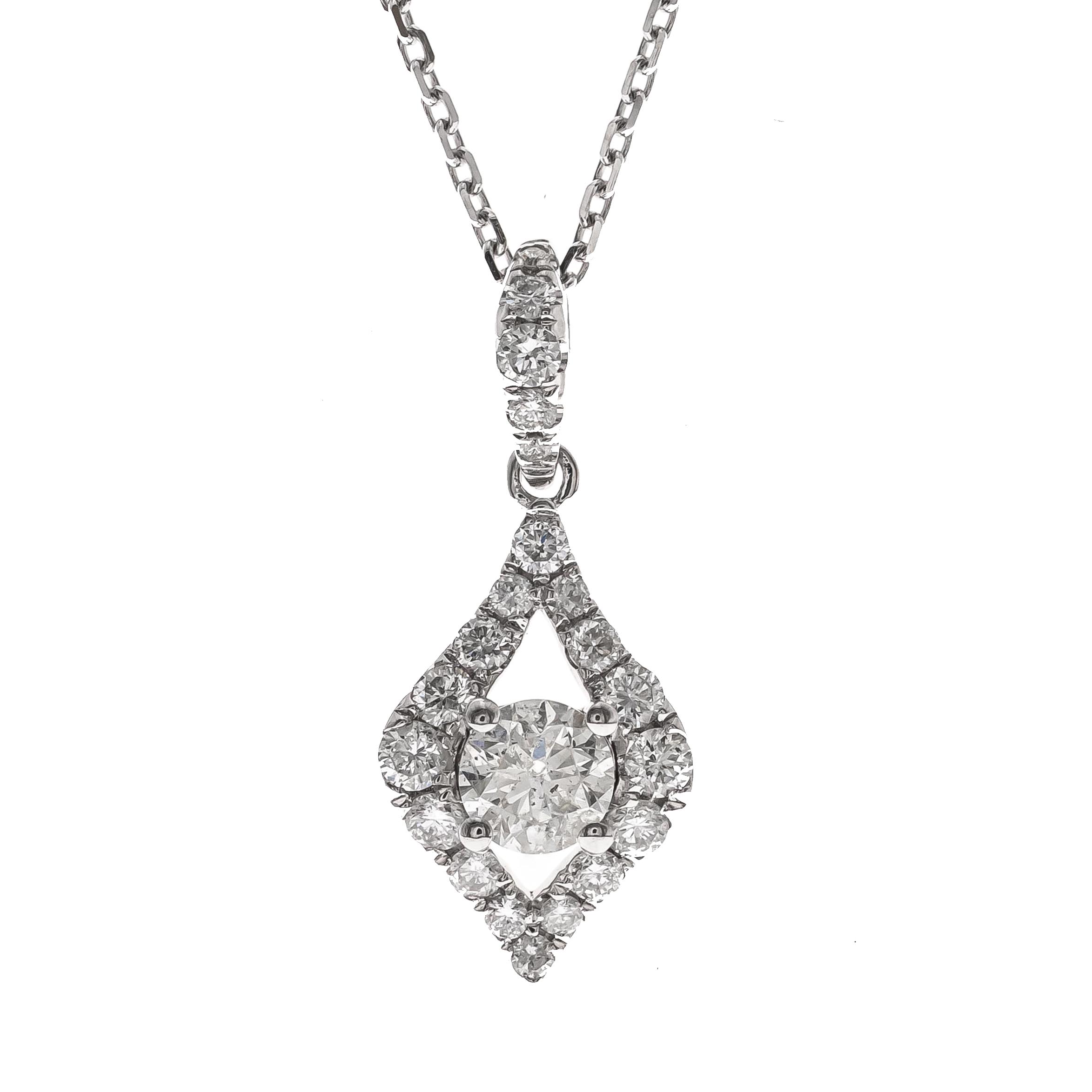 Decorate yourself in elegance with this Pendant is crafted from 14-karat White Gold by Gin & Grace Pendant. This Pendant is made up of Round-Cut White Diamond (24 Pcs) 0.66 Carat. This Pendant is weight 2.51 grams. This delicate Pendant is polished to a high finish shine.