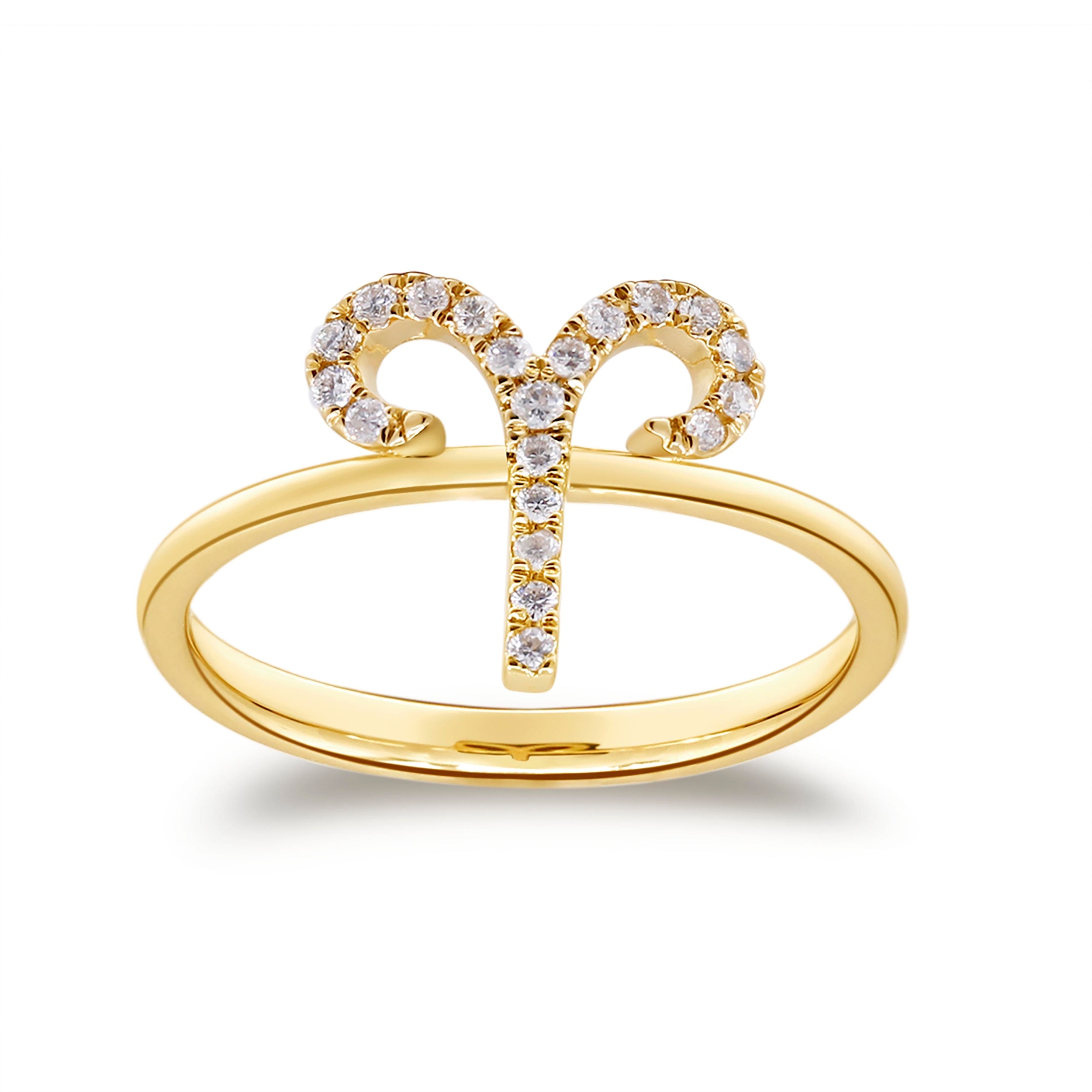 Show off your astrological pride with this elegant Aries zodiac ring, expertly crafted to capture the fiery and confident nature of the sign. Set with 20 natural white diamonds totaling 0.14 carats, the design sparkles with understated brilliance while keeping a modern, wearable style. Perfect as a personal statement piece or a meaningful gift for the Aries in your life.