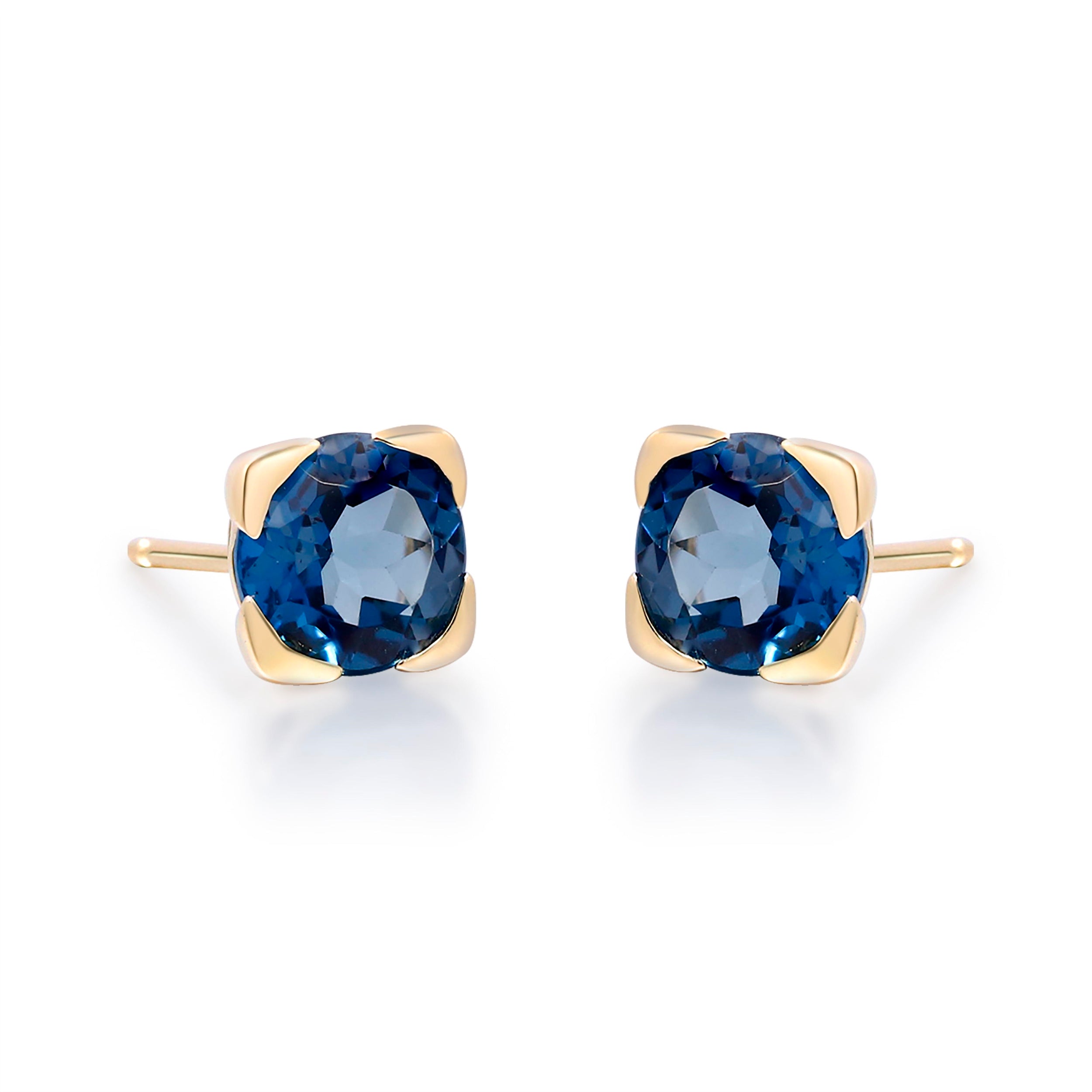 Decorate yourself in elegance with this Ring is crafted from 10-karat Yellow Gold by Gin & Grace Earring. This Earring is made up of Round-Cut London Blur Topaz (2 Pcs) 1.98 Carat. This Earring is weight 1.03 grams. This delicate Earring is polished to a high finish shine.