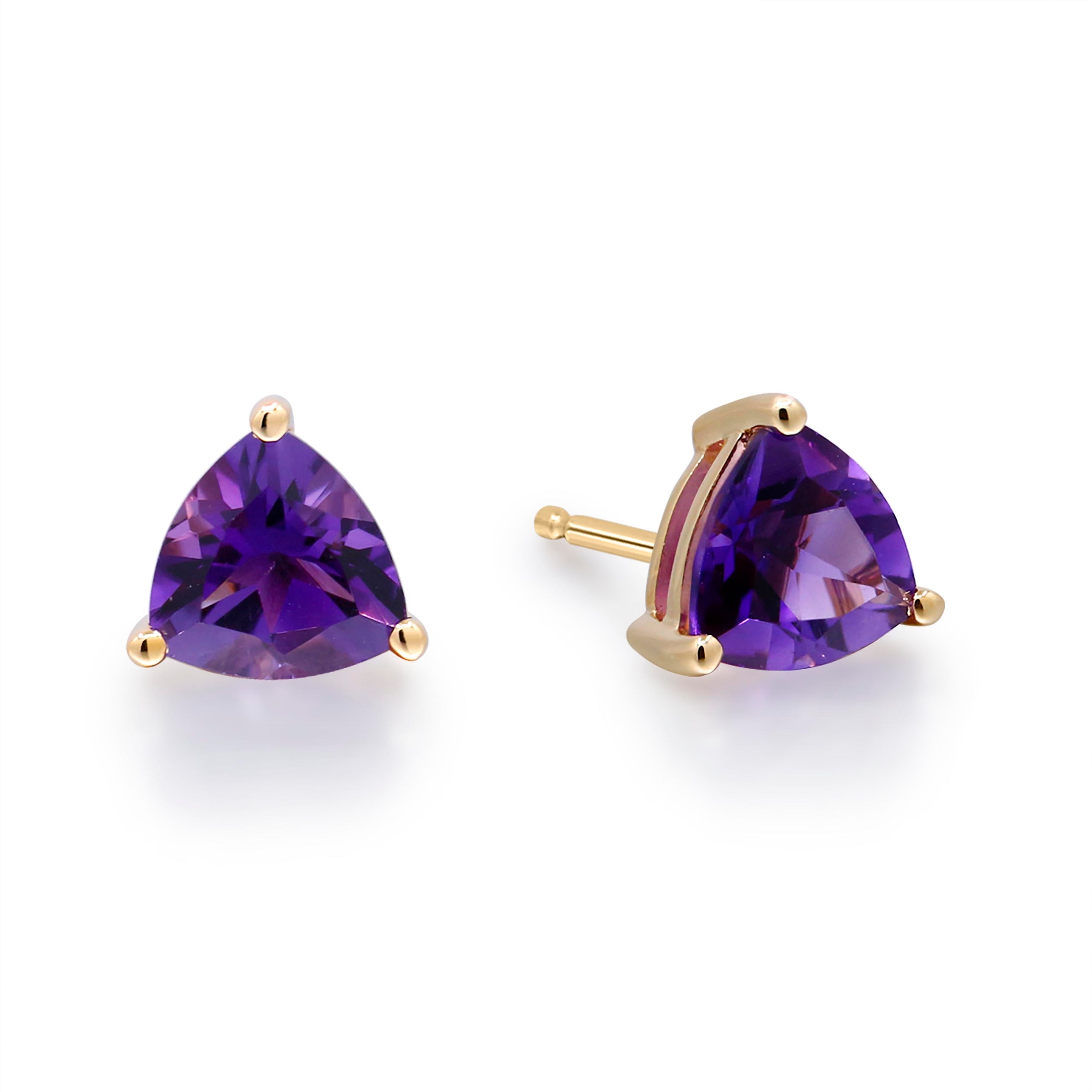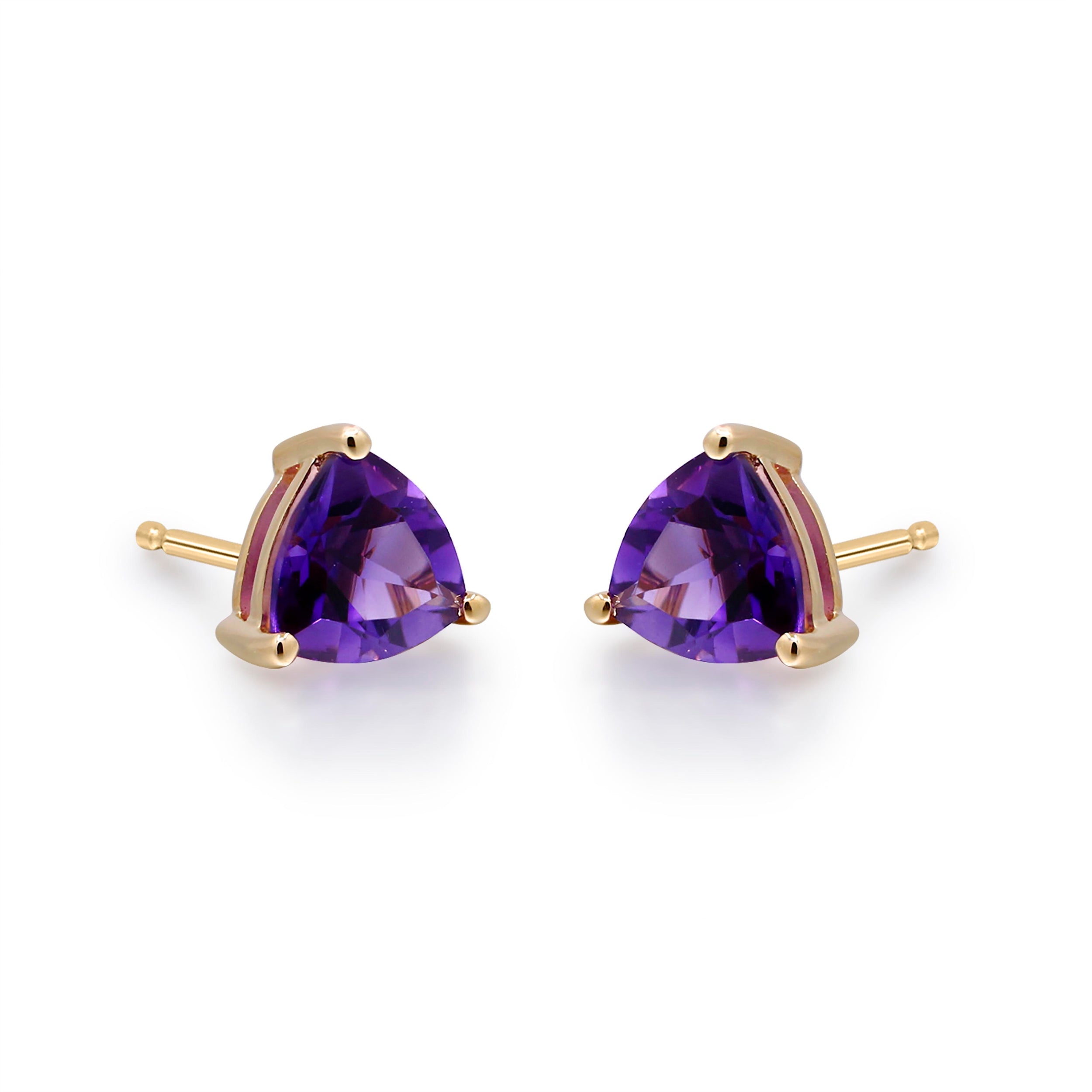 Decorate yourself in elegance with this Earring is crafted from 14-karat Yellow Gold by Gin & Grace Earring. This Earring is made up of 6MM Trillion-Cut Prong setting Brazilian Amethyst (2pcs) 1.38 Carat. This Earring is weight 0.99 grams. This delicate Earring is polished to a high finish shine. Simple Stud clasps keep these earrings securely fastened.