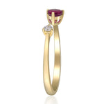 Stunning, timeless and classy eternity Unique ring. Decorate yourself in luxury with this The Gin & Grace ring. This ring is made up of Pear-Cut Prong Setting Genuine Mozambique Ruby (1 pcs) 0.41 Carat and Round-Cut Prong Setting Natural Diamond (1 pcs) 0.5 Carat accent stones for a lovely design. This ring weighs 1.56 grams. The ring is crafted of shining 14-karat Yellow Gold and is completed by a highly polished finish.