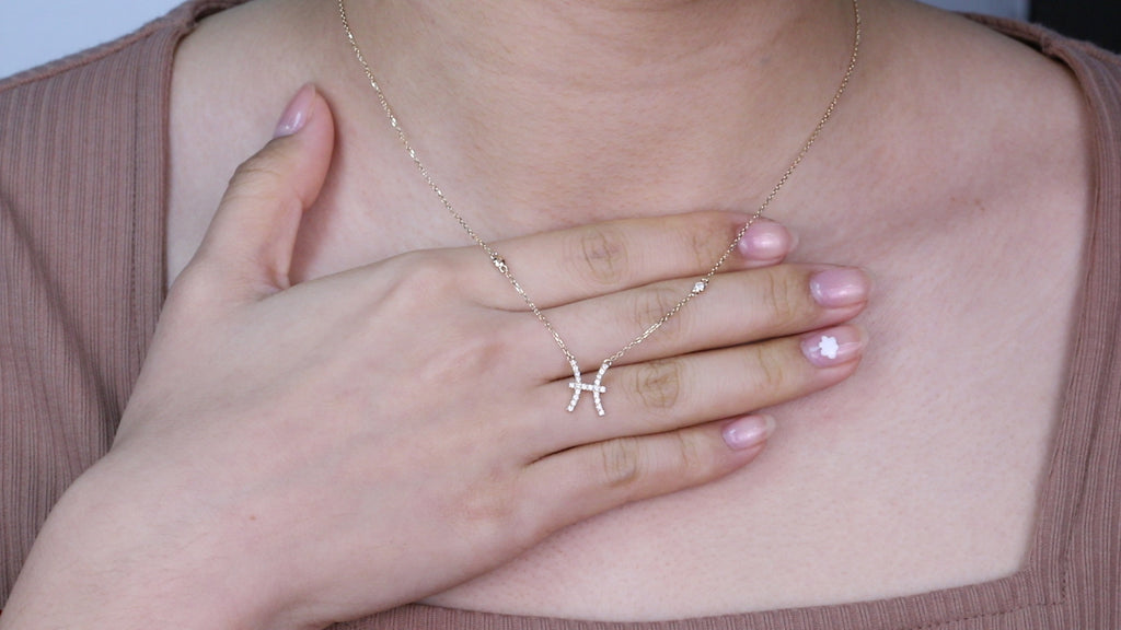 Pisces 10K Yellow Gold Round-Cut White Diamond Pendant