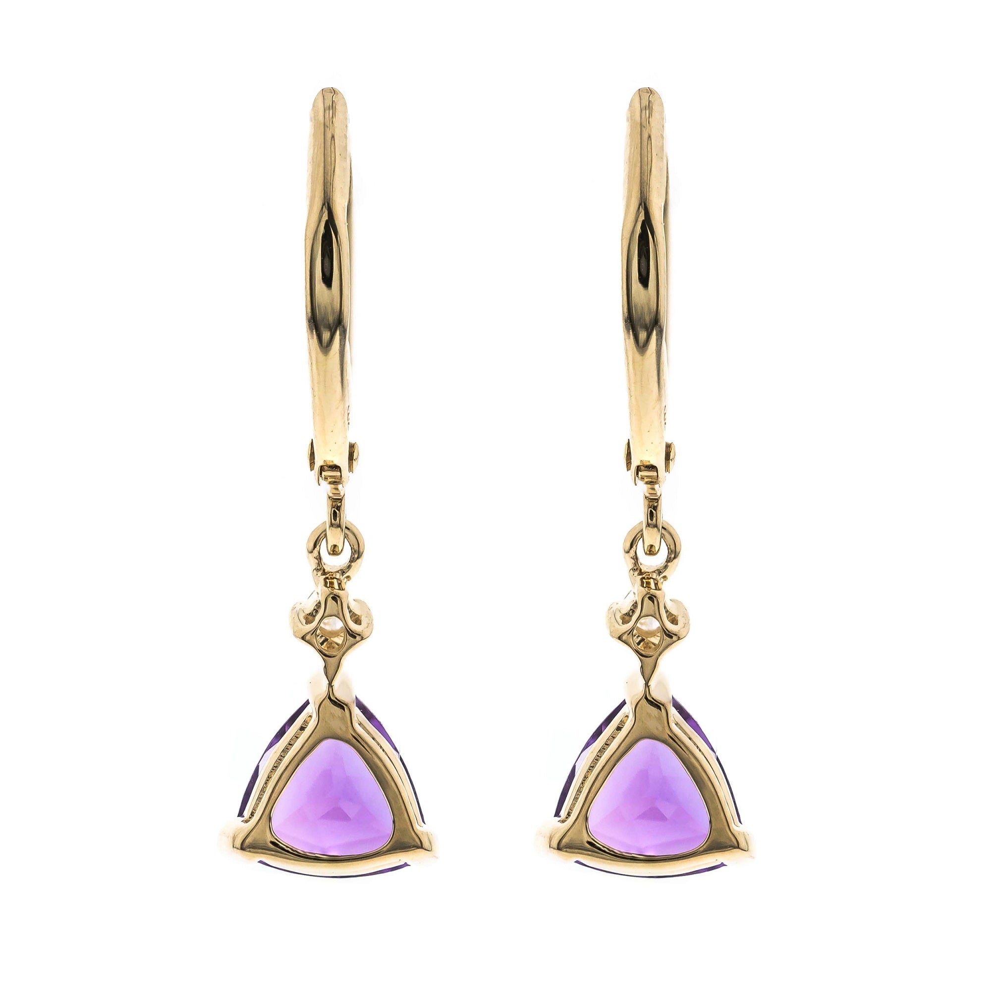 Decorate yourself in elegance with this Earring is crafted from 14K Yellow Gold by Gin & Grace Earring. The jewelry boasts 6MM Trillion-Cut prong setting Brazilian Amethyst (2 pcs) 1.34 Carat and Round-Cut prong setting Diamond (2 pcs) 0.03 Carat. This Earring is weight 1.18 grams. This delicate Earring is polished to a high finish shine. Simple leverback clasps keep these earrings securely fastened.