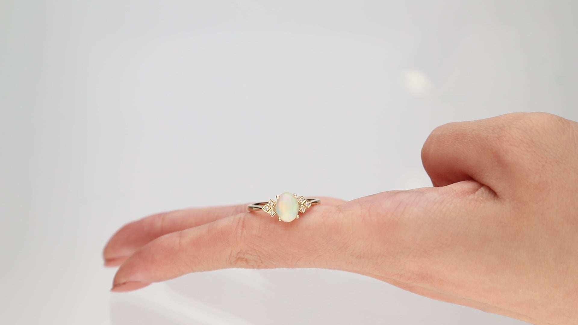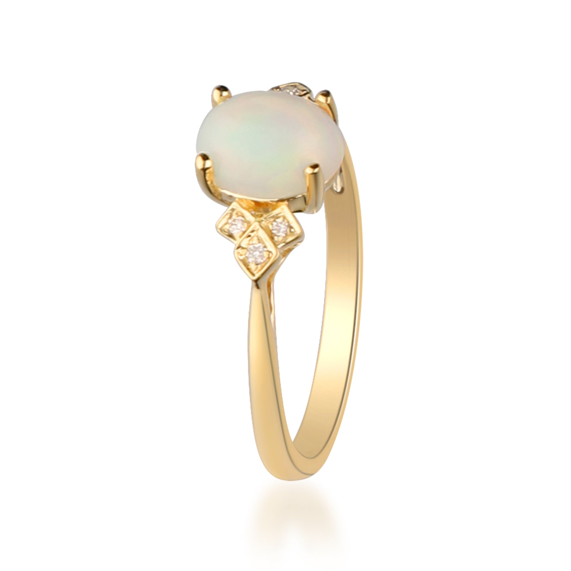 Stunning, timeless and classy eternity Unique ring. Decorate yourself in luxury with this Gin & Grace ring. This ring is made up of 8x6 MM Oval-cut Prong Setting African Opal (1 pcs) 0.86 Carat and Round-Cut Prong Setting Diamond (6 pcs) 0.03 Carat accent stones for a lovely design. This ring is weight 2.09 grams. The ring is crafted of shining 14-karat Yellow Gold and is completed by a highly polished finish.Â