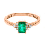 Decorate yourself in elegance with this Ring is crafted from 10-karat Rose Gold by Gin & Grace. This Ring is made up of Zambian Emerald Emerald-cut (1 pcs) 0.55 and Round-cut Diamond (8 pcs) 0.08 Carat. This Ring is weight 1.32 grams. This delicate Ring is polished to a high finish shine.